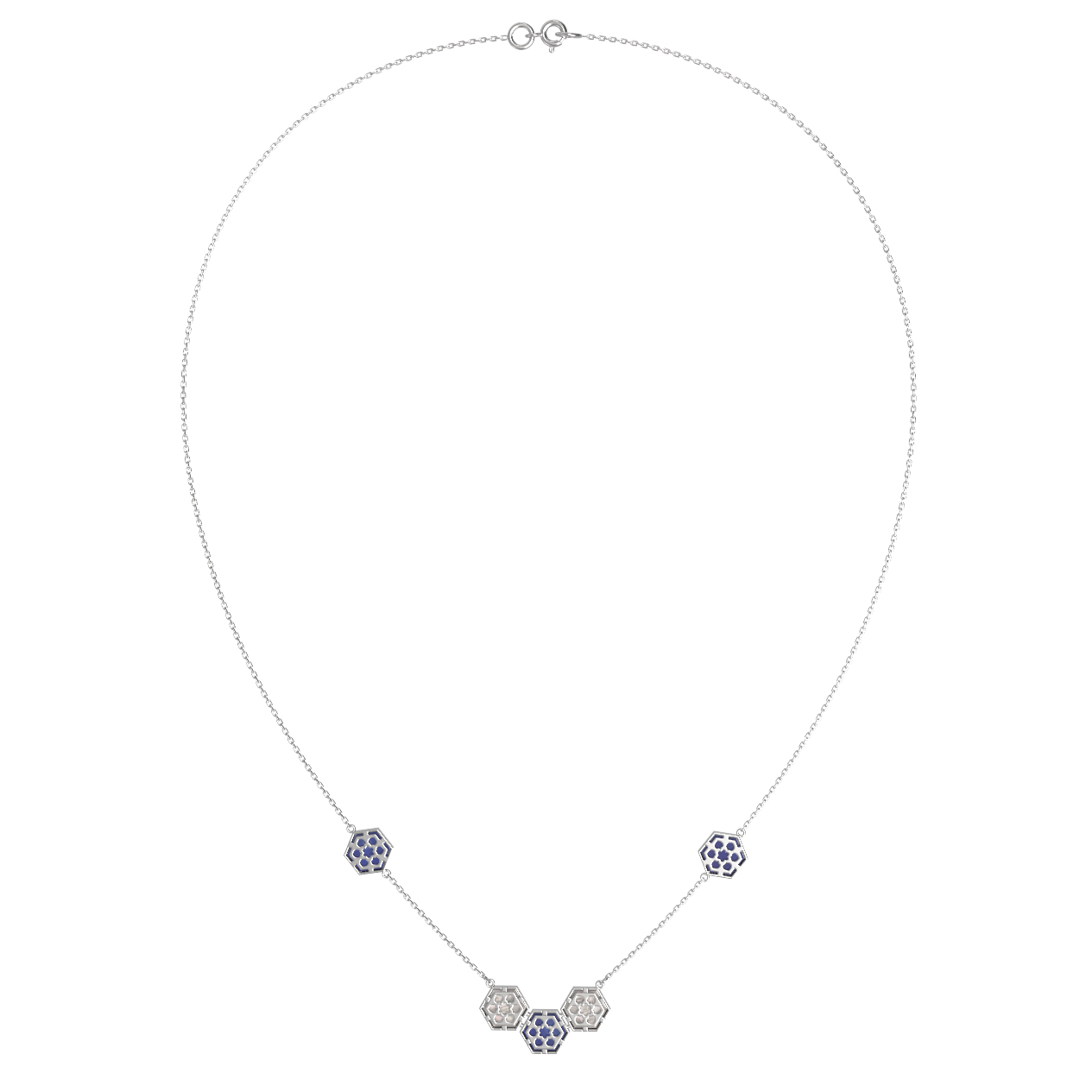 Колье из белого золота c лазуритом и перламутром