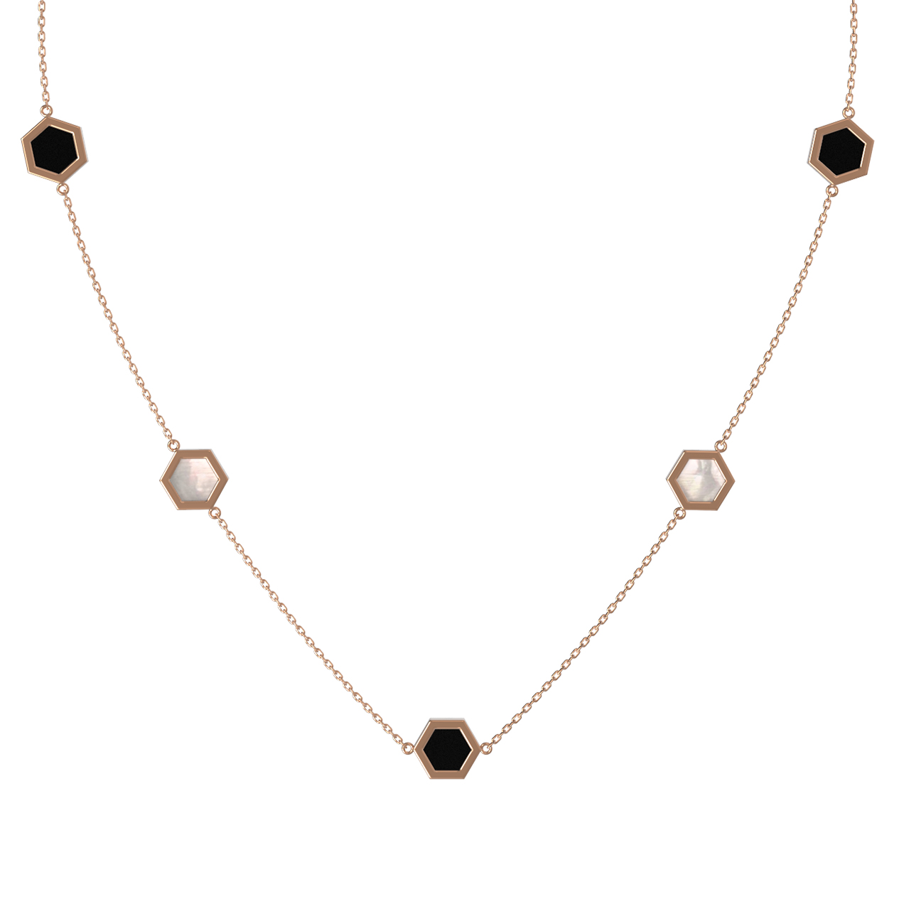 Колье из золота c ониксом и перламутром