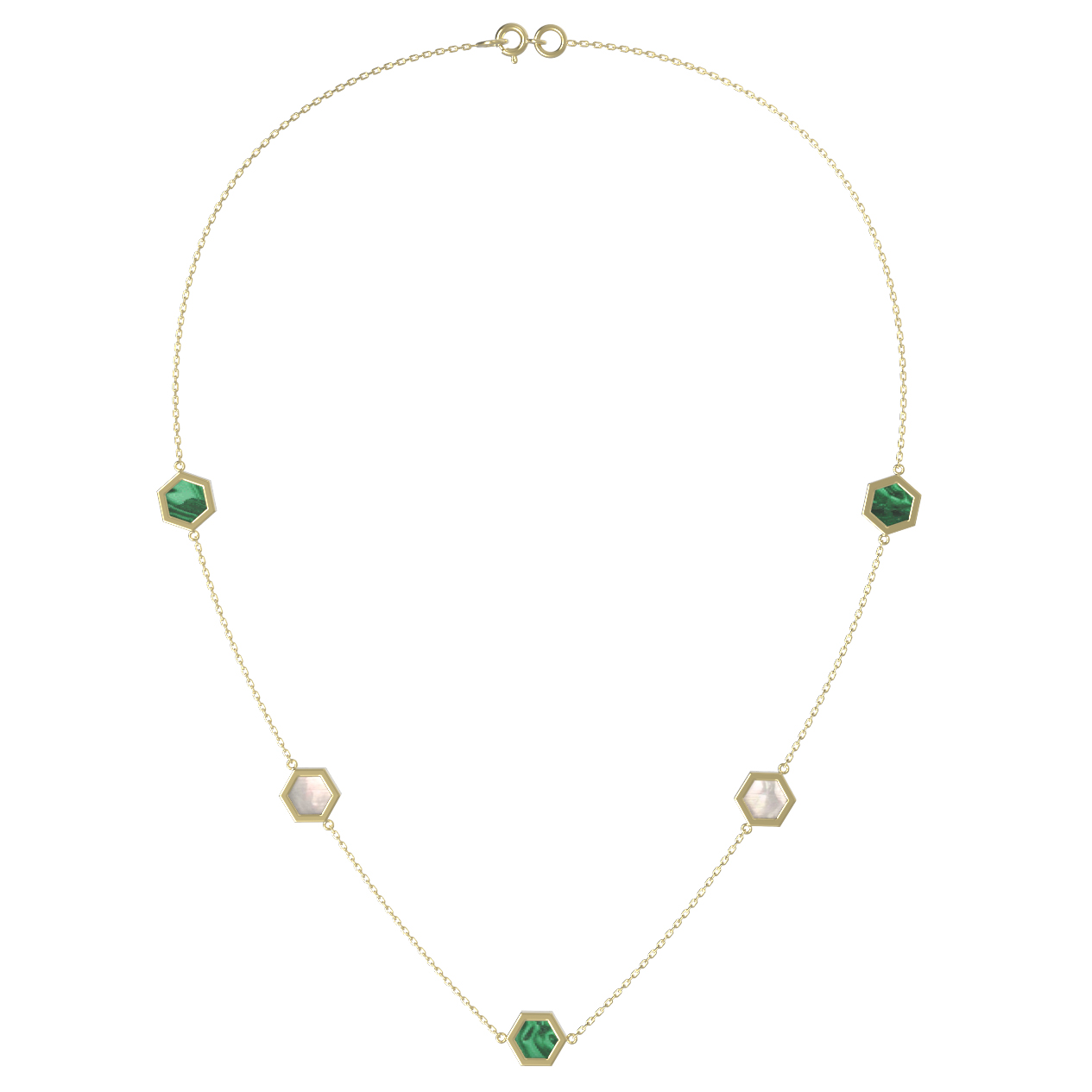 Колье из лимонного золота c малахитом и перламутром