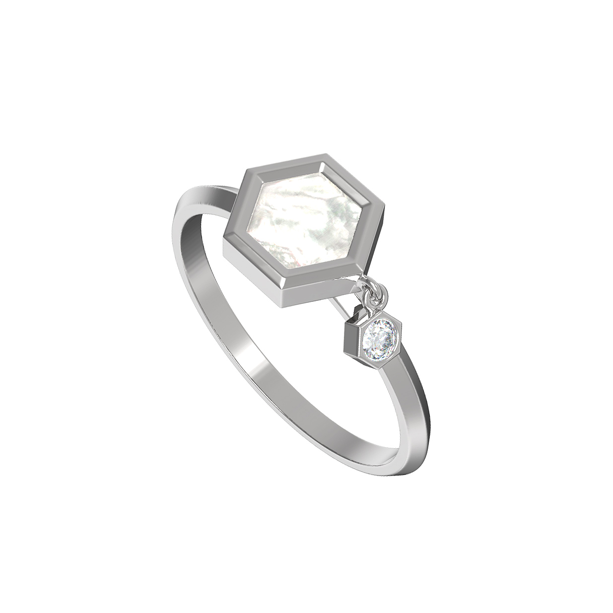 Кольцо из белого золота c бриллиантами и перламутром