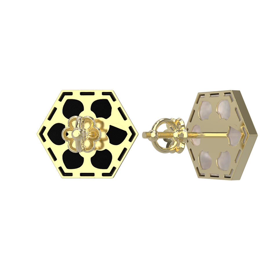 Серьги из лимонного золота c ониксом и перламутром