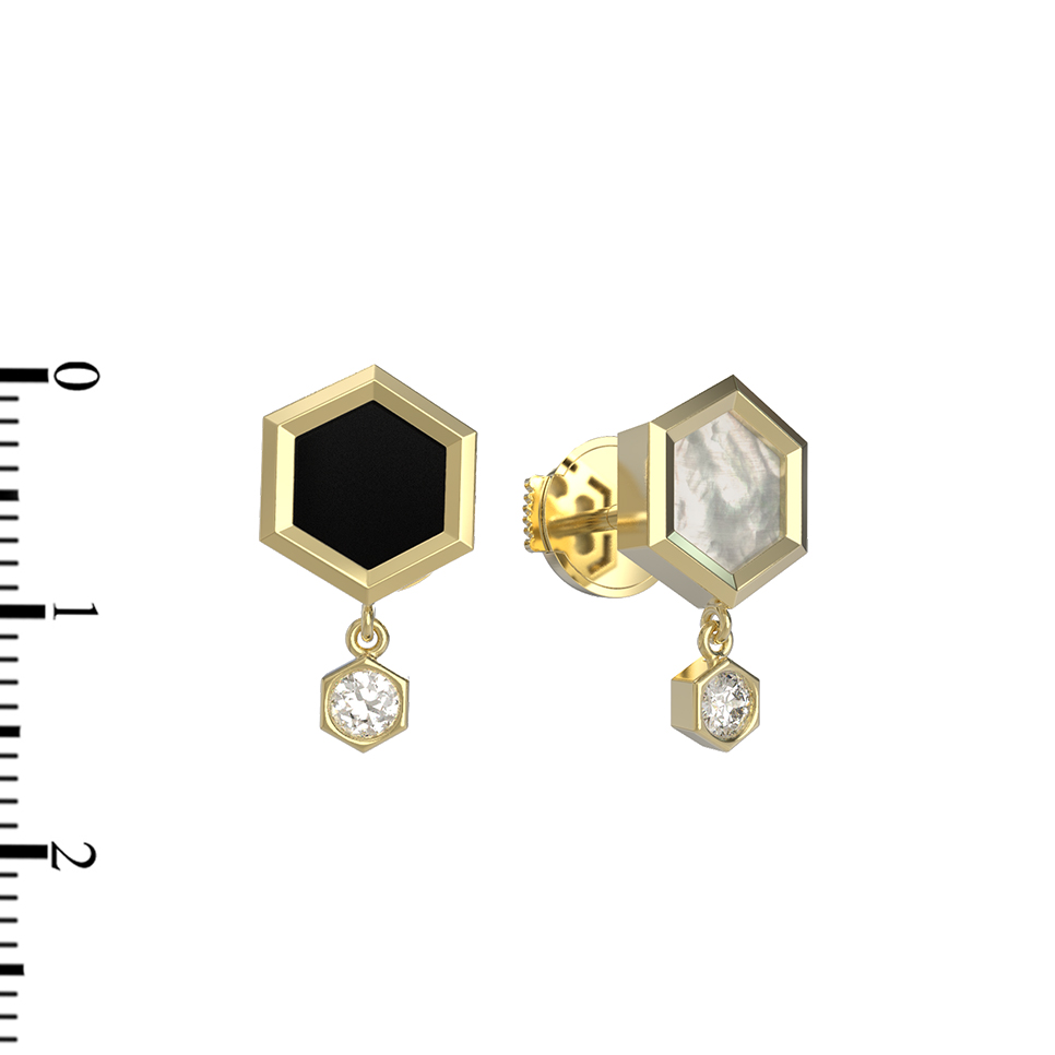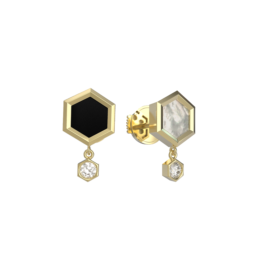 Серьги из лимонного золота c бриллиантами, ониксом и перламутром