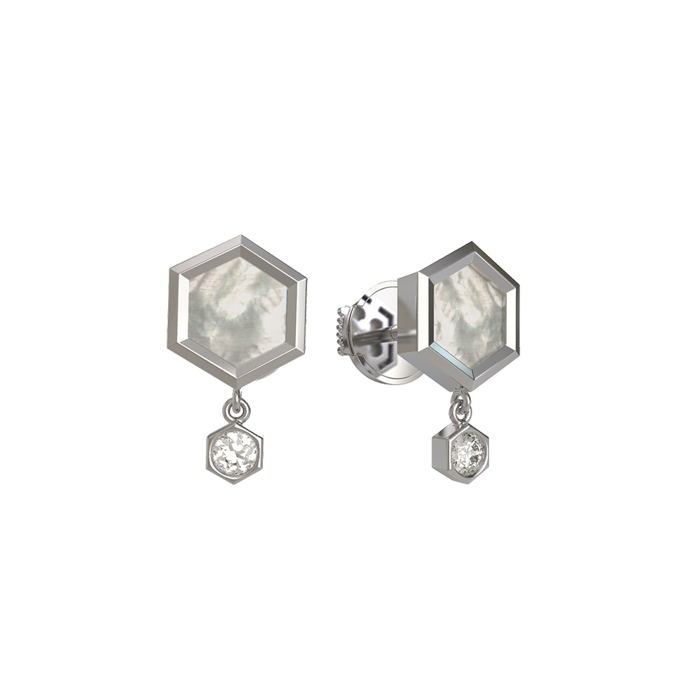 Серьги из белого золота c бриллиантами и перламутром