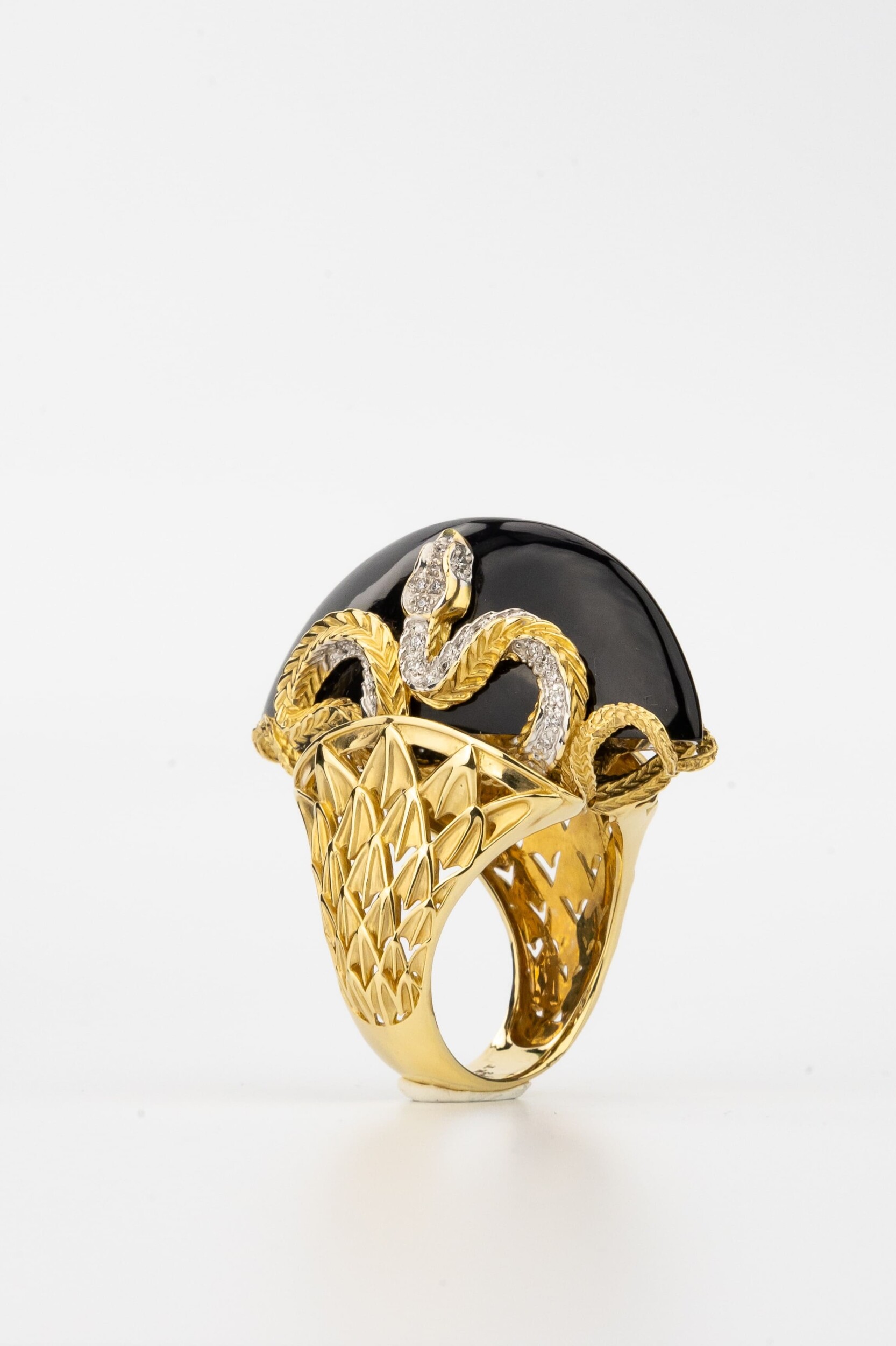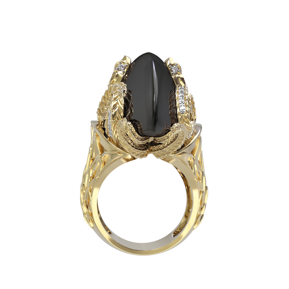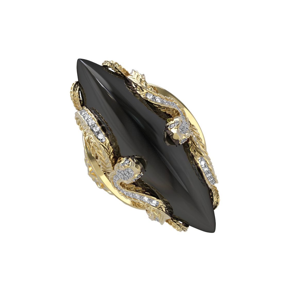 Кольцо из лимонного золота c бриллиантами и ониксом
