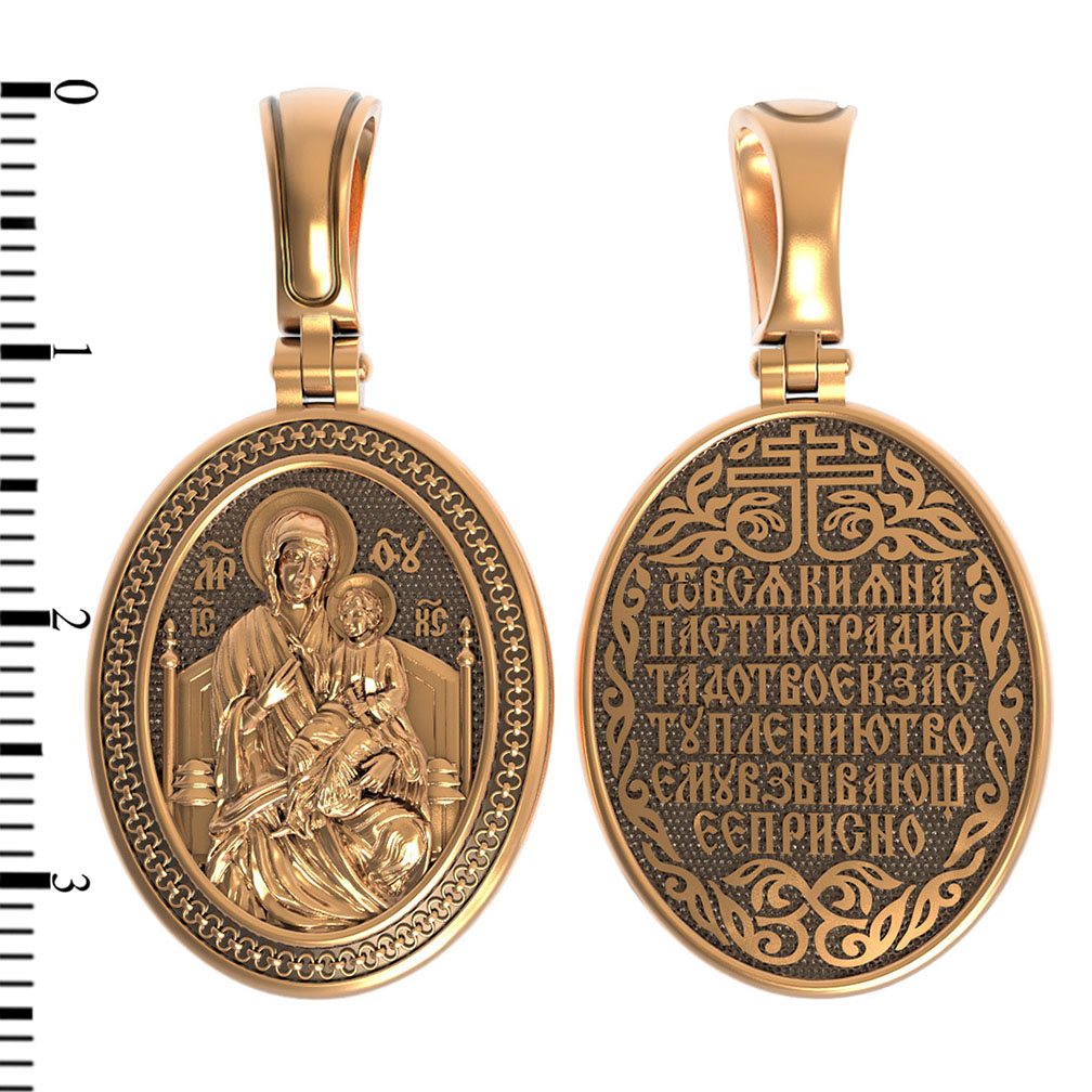 На обороте образка написана молитва Богородице в честь Ее иконы «Всецарица» (Пантанасса): «От всякия напасти огради стадо Твое, к заступлению Твоему взывающее присно».