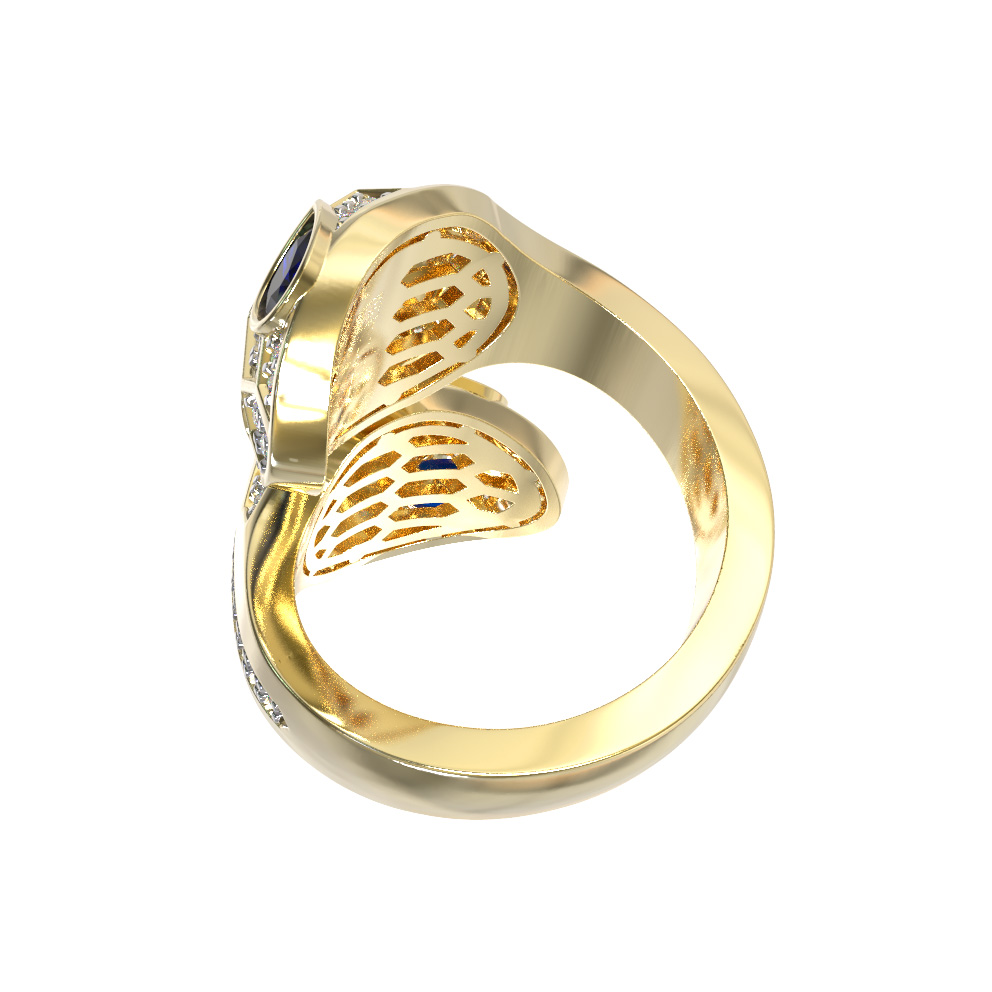 Кольцо из лимонного золота c бриллиантами, сапфиром и малахитом