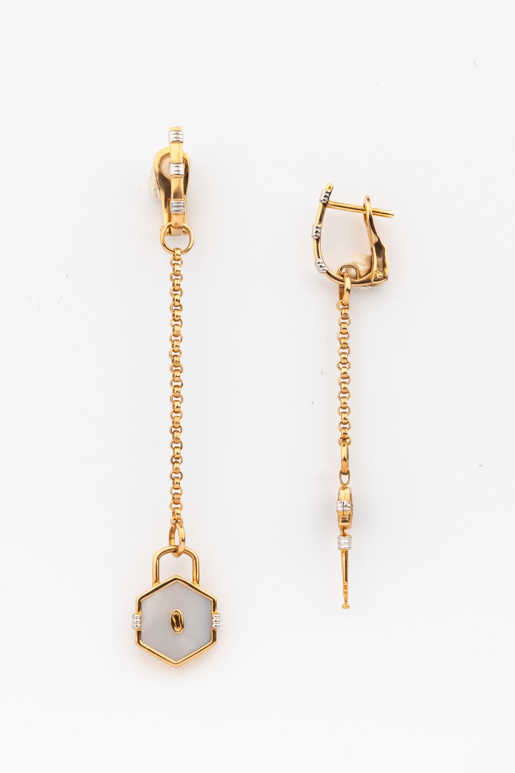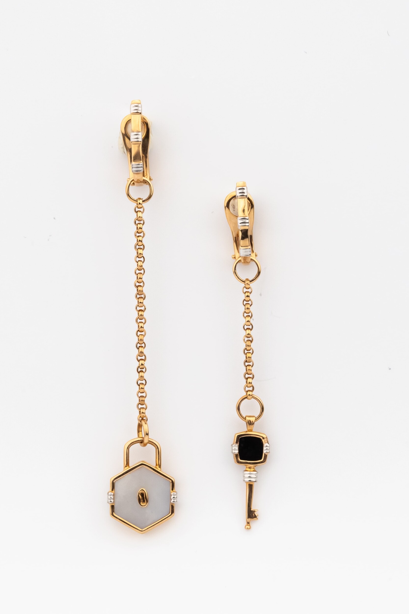 Серьги из золота c ониксом и перламутром