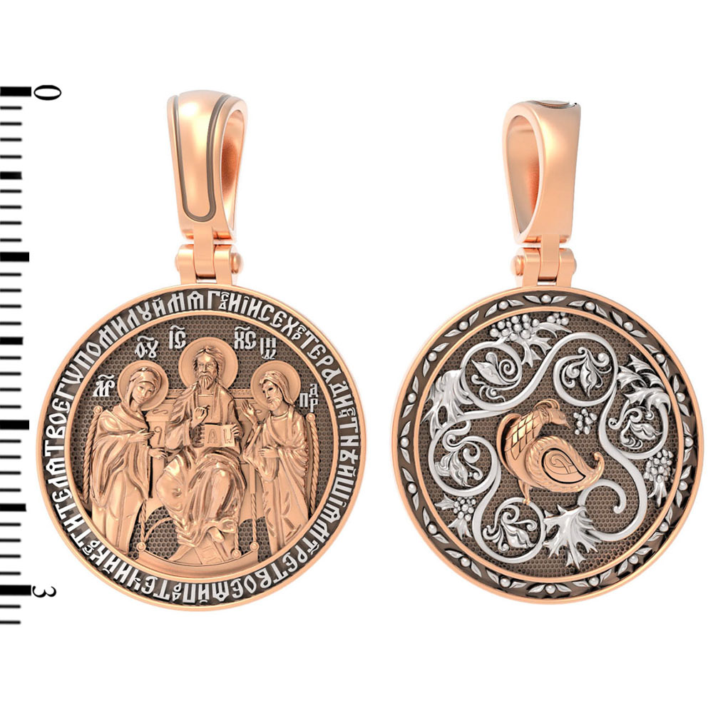На лицевой стороне образка изображена икона Иисуса Христа Деисус. Он представлен в образе Господа Вседержителя, восседающего на престоле. В его руках — Книга Судеб всего человечества. С двух сторон ему предстоят Пресвятая Богородица и пророк Иоанн Предтеча, Креститель Господень. Первыми помощниками и заступниками человека в его земной жизни являются Матерь Божия и Иоанн Креститель. Поэтому каждый верующий в первую очередь к ним обращает свои молитвы с просьбой о духовной помощи. Такая молитва-прошение помещена на образке: «Господи Иисусе Христе, ради честнейшия Матери Твоея и Предтечи и Крестителя Твоего, помилуй мя».