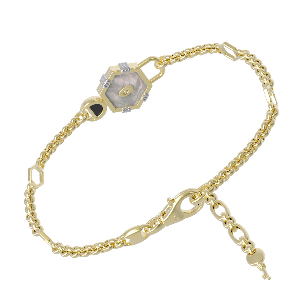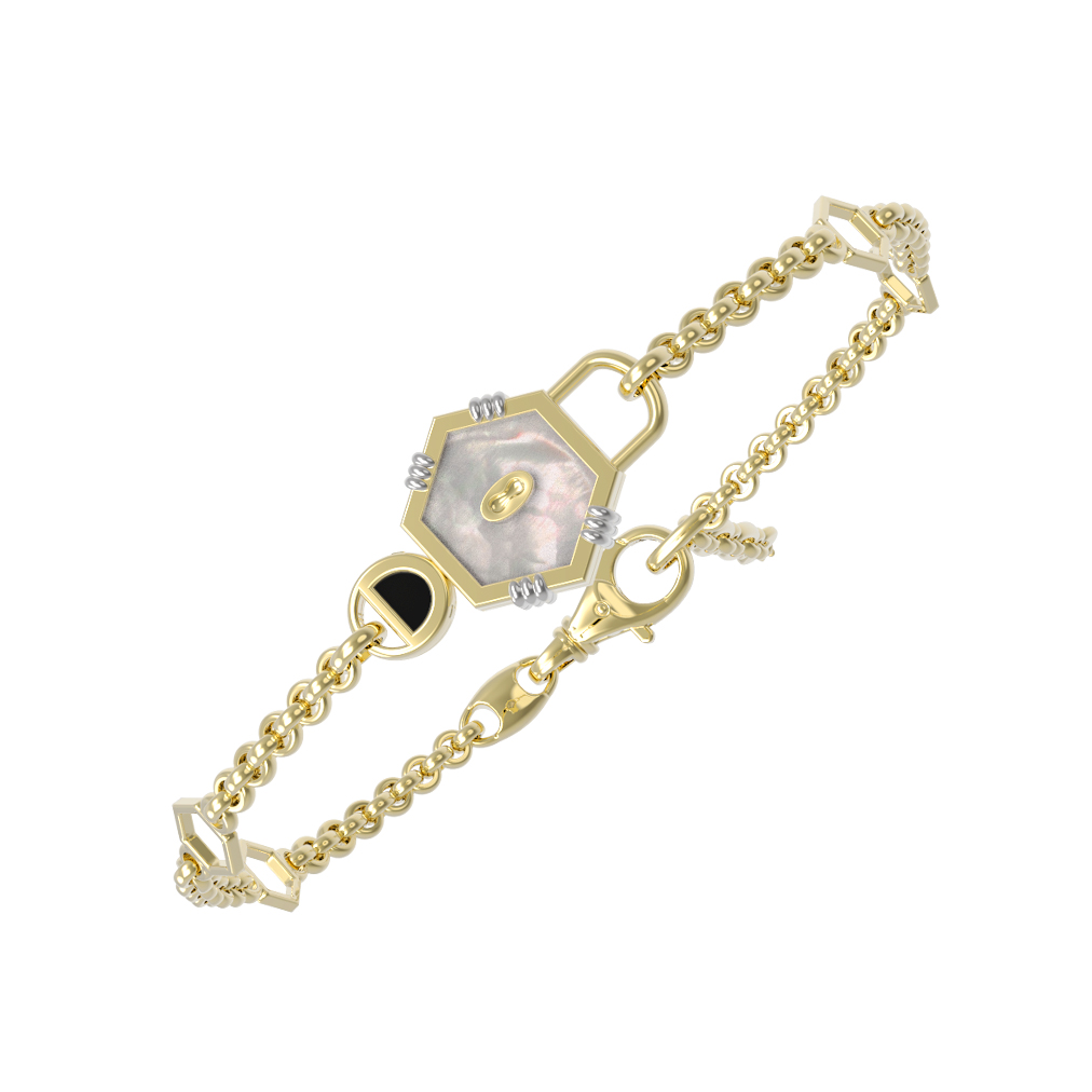 Браслет из лимонного золота c ониксом и перламутром