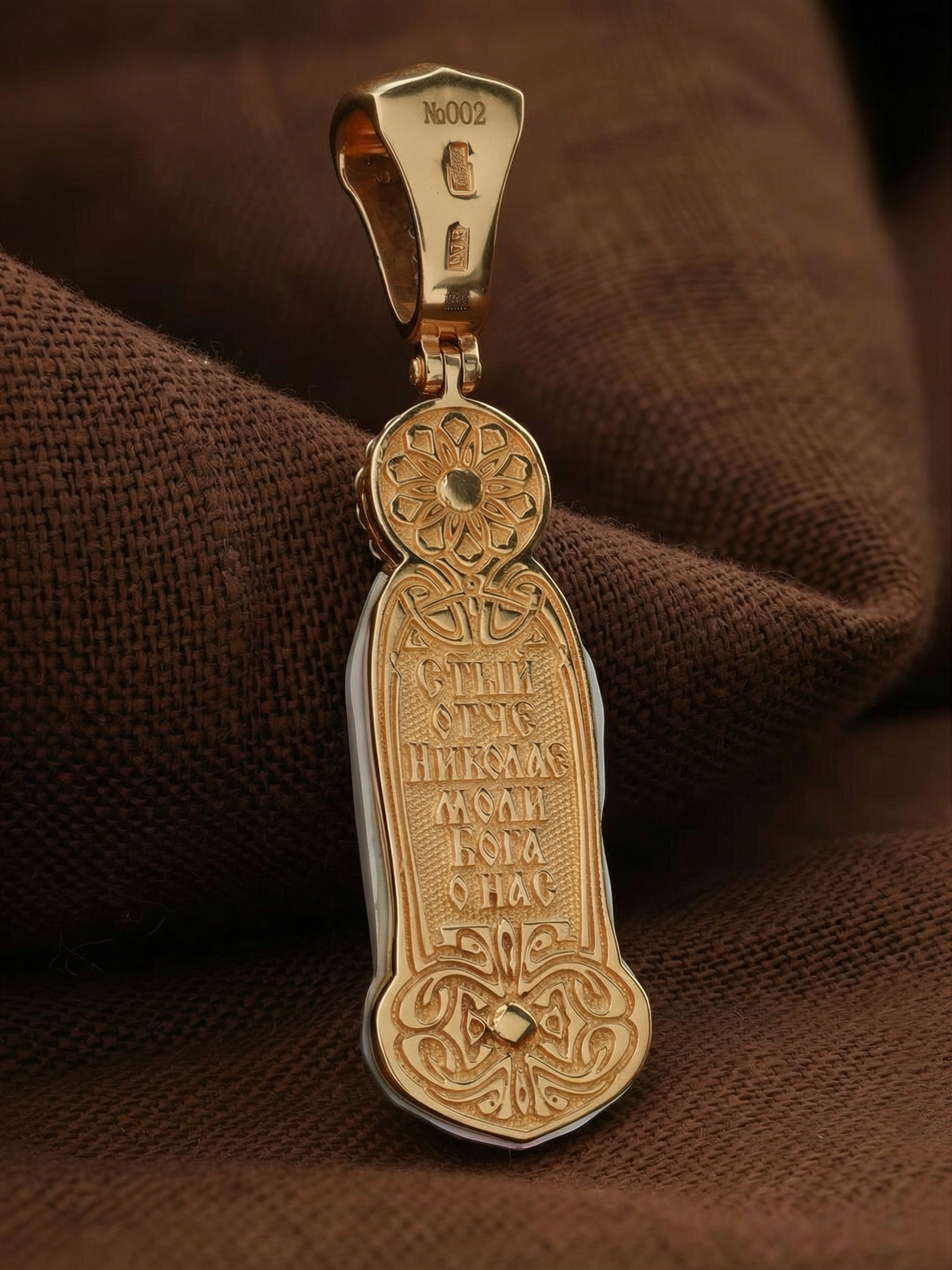 Образок из золота c бриллиантами и перламутром