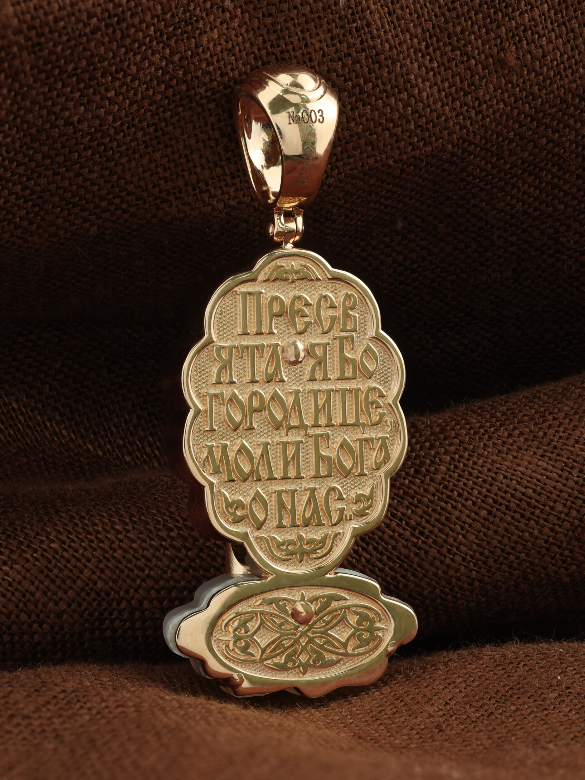 На оборотной стороне образка помещена молитва: «Пресвятая Богородице, моли Бога о нас.»