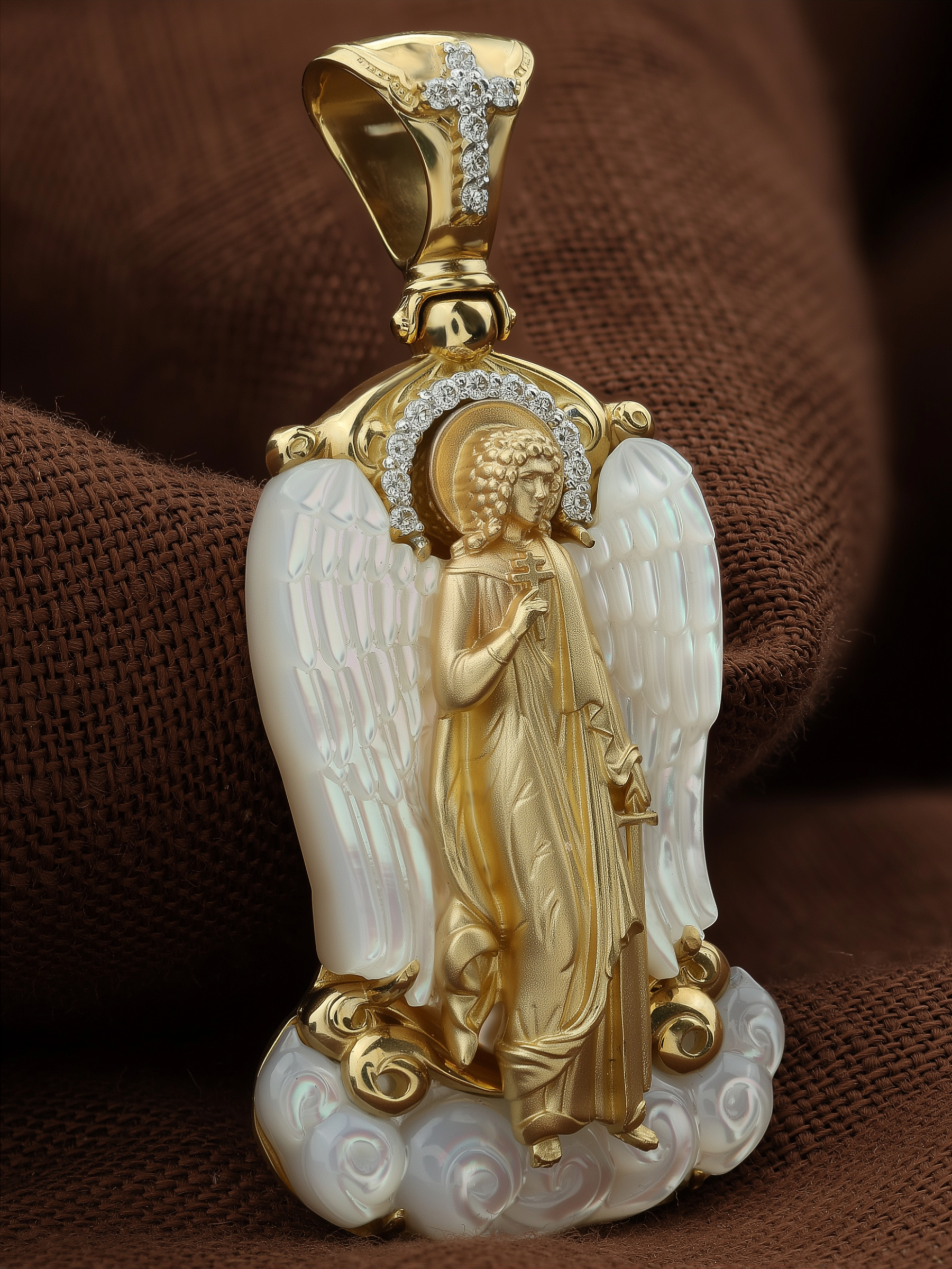 На лицевой стороне образка изображен Святой Ангел-Хранитель держащий в правой руке крест, а в левой — мечь. Ангел-Хранитель — это Ангел приставляемый Богом к человеку при крещении для охраны и помощи в добрых делах. Всё, что есть в нас доброго, чистого, светлого: всякая хорошая мысль, всякое доброе движение сердца, наша молитва, покаяние, добрые дела — всё это в нас рождается и совершается по внушению незримого нашего Ангела-Хранителя. Действуя через нашу совесть и наше сердце, это он, наш Ангел, удерживает нас от греха и соблазна, это он помогает нам бороться с искушениями, это он внушает нам страх пред тяжким грехопадением. Ангел, будучи служителем любви и мира, радуется о нашем покаянии и преуспеянии в добродетели, старается наполнять нас духовными созерцаниями (по мере нашей восприимчивости) и содействует нам во всяком добре. И, если мы сами не оттолкнём его от себя во время нашей земной жизни, он поведёт нашу душу и на поклонение Богу, когда наступит время разлучиться душе с телом.