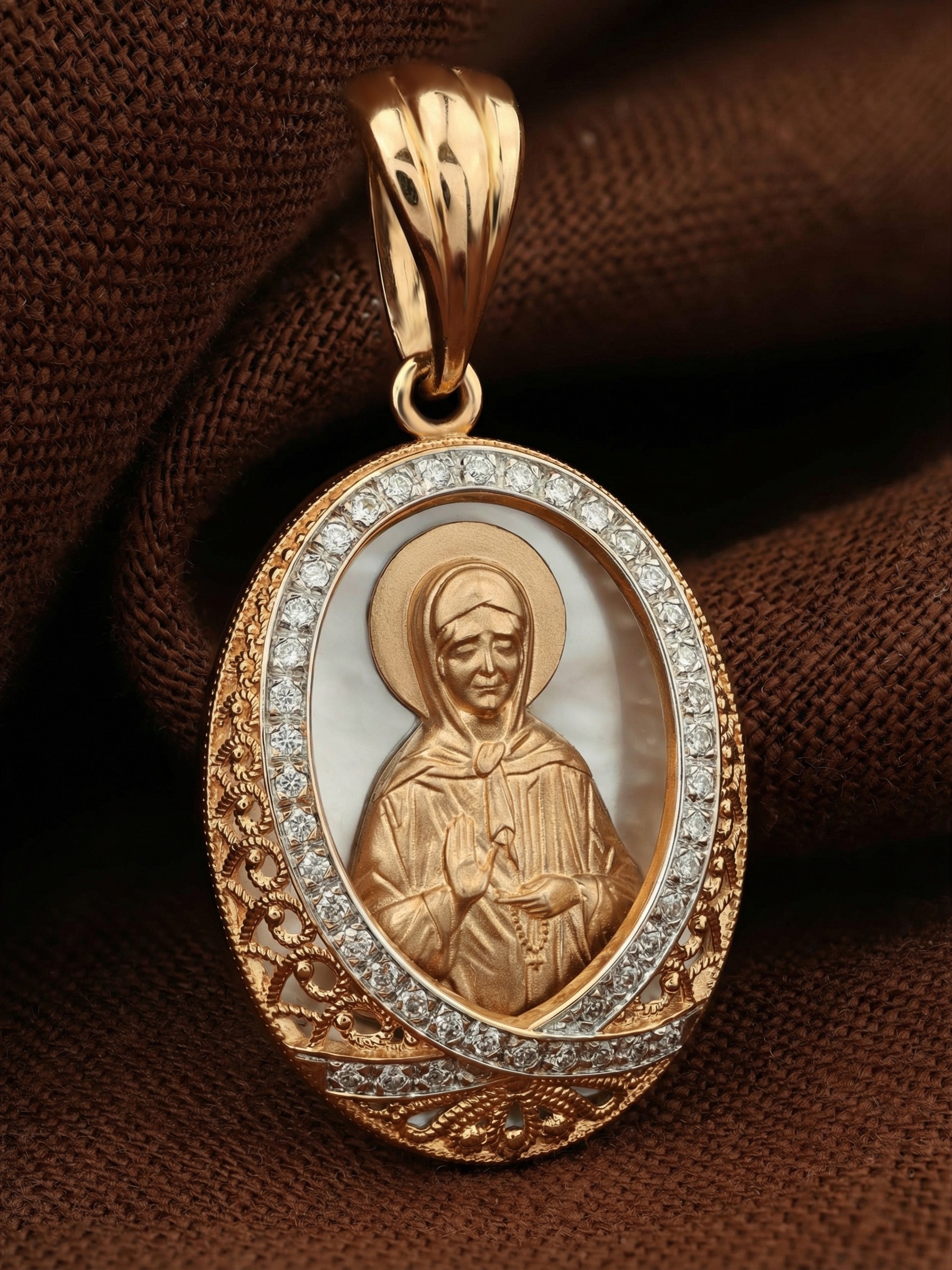 Образок из золота c бриллиантами и перламутром
