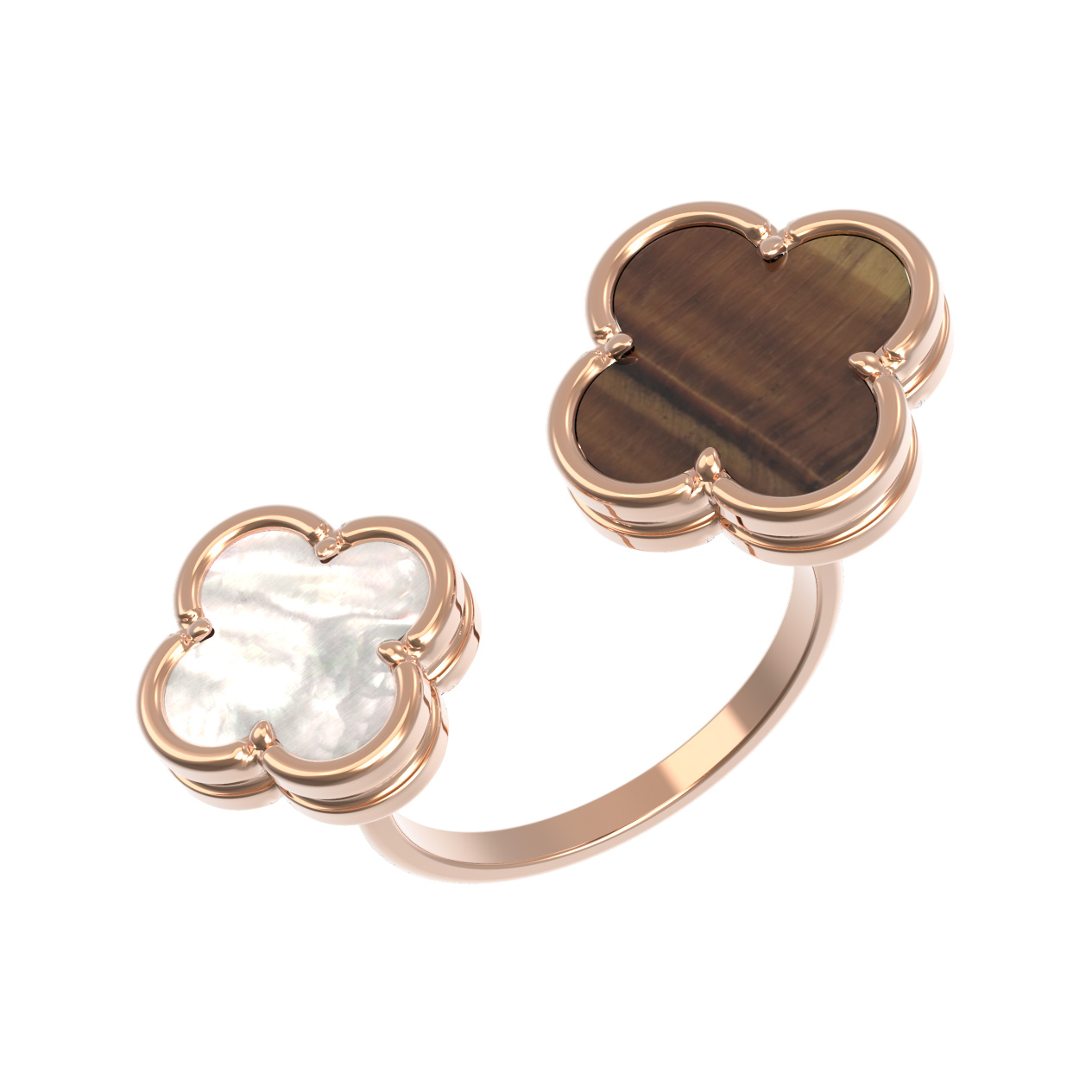 Кольцо из золота c тигровым глазом и перламутром