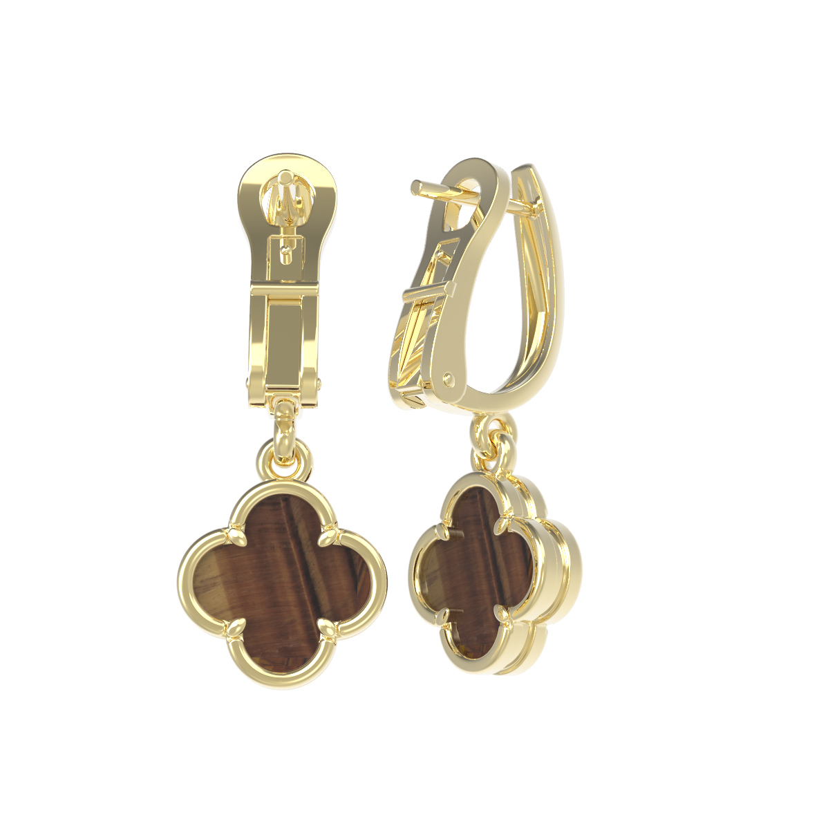 Серьги из лимонного золота c тигровым глазом