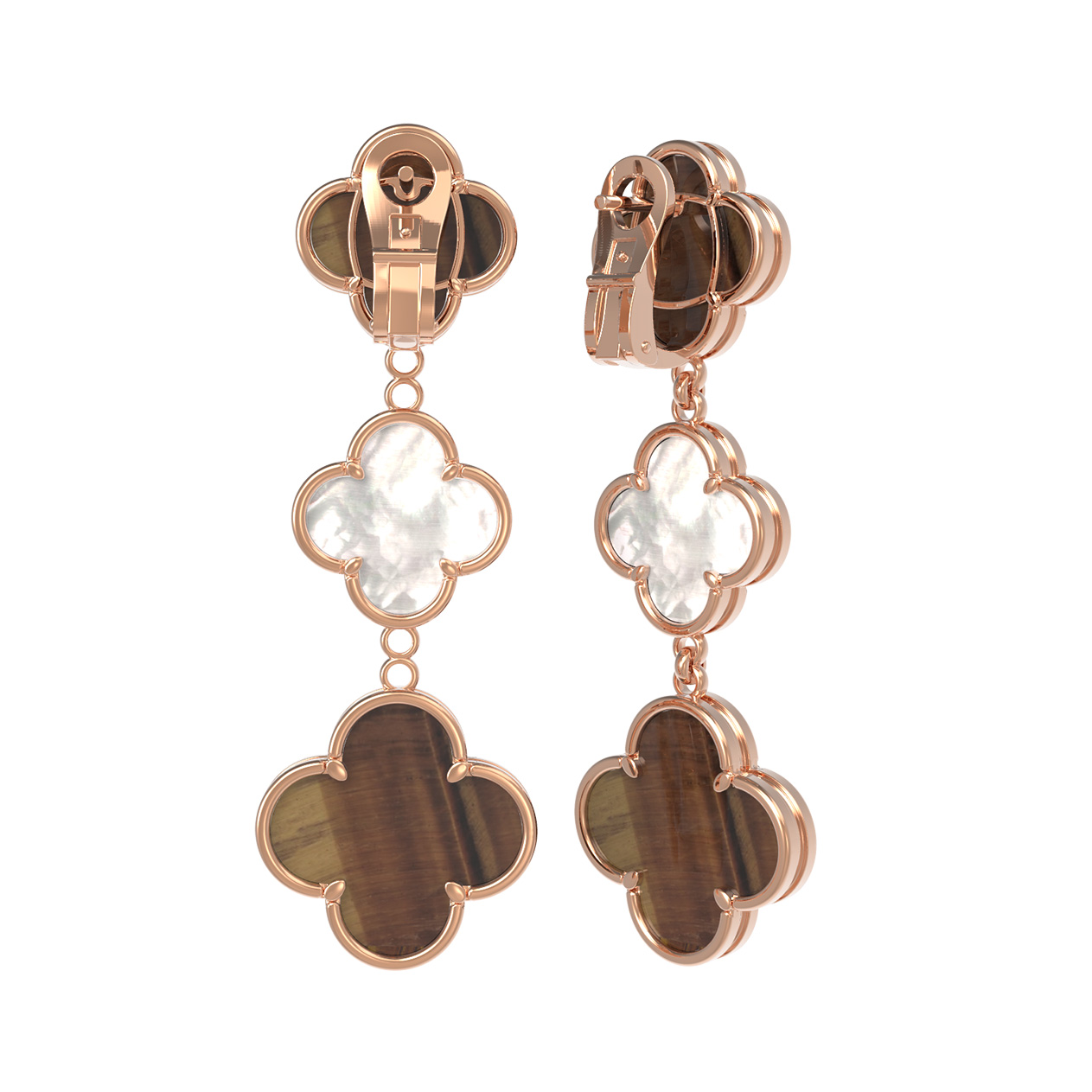 Серьги из золота c тигровым глазом и перламутром