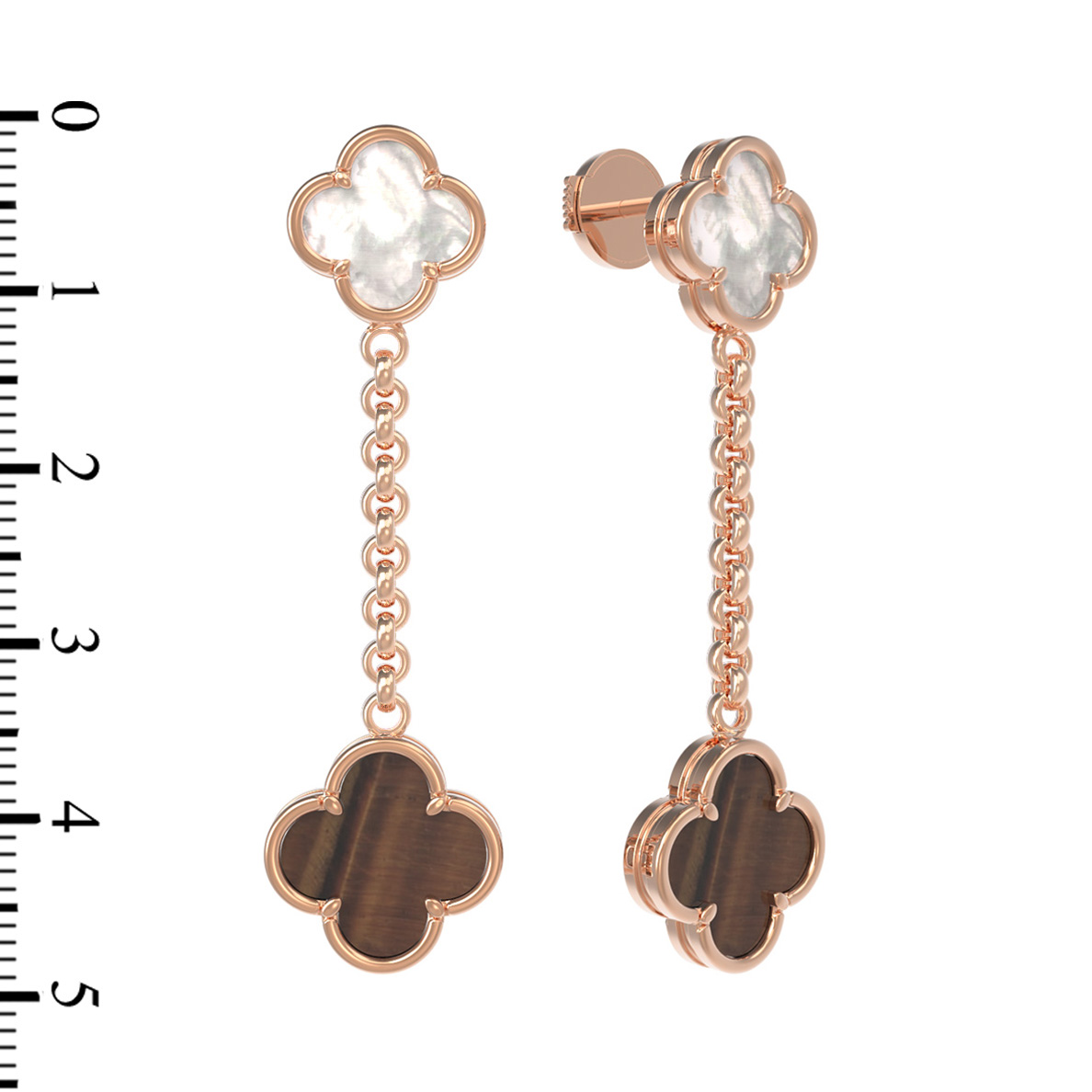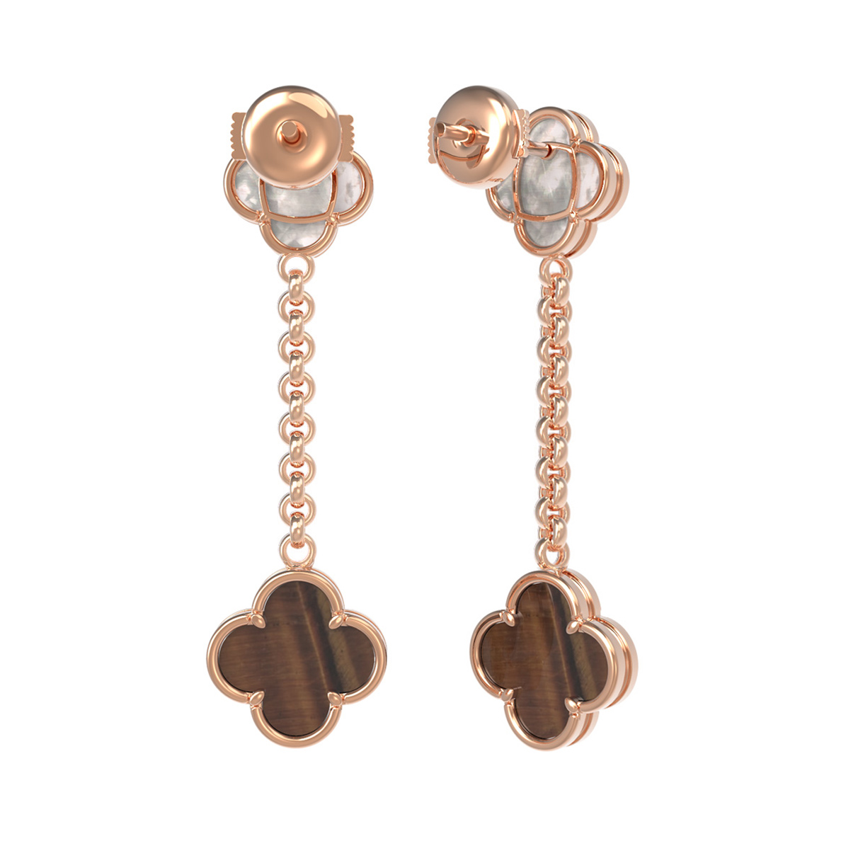 Серьги из золота c тигровым глазом и перламутром