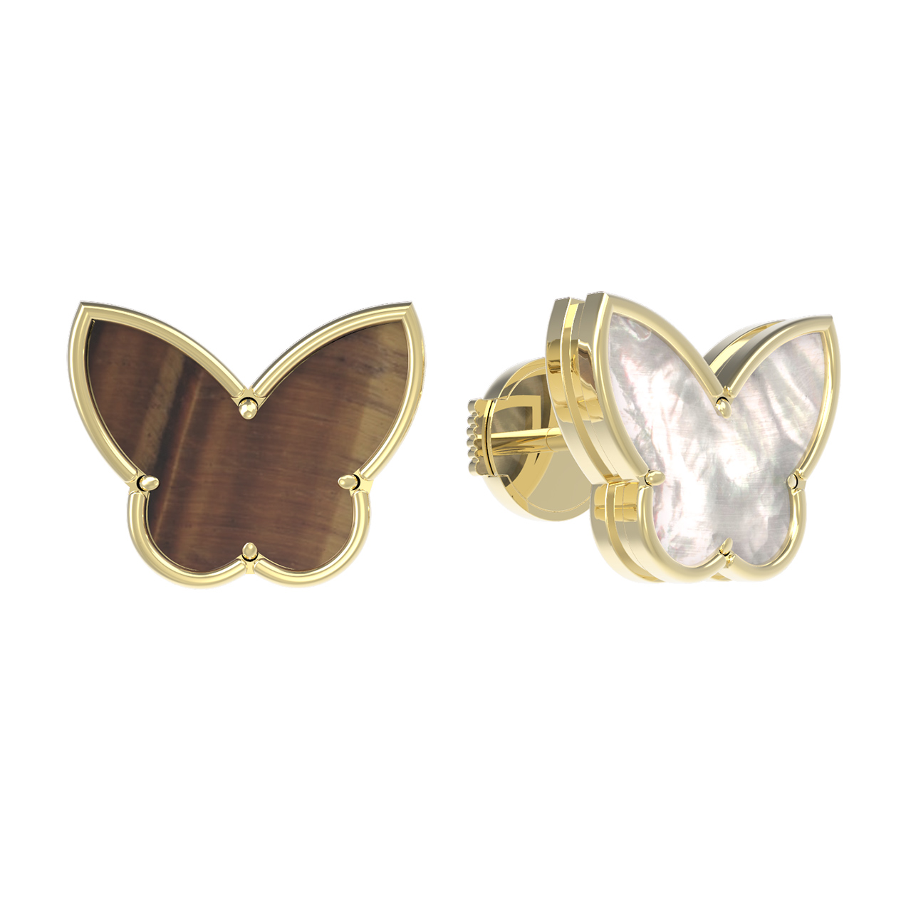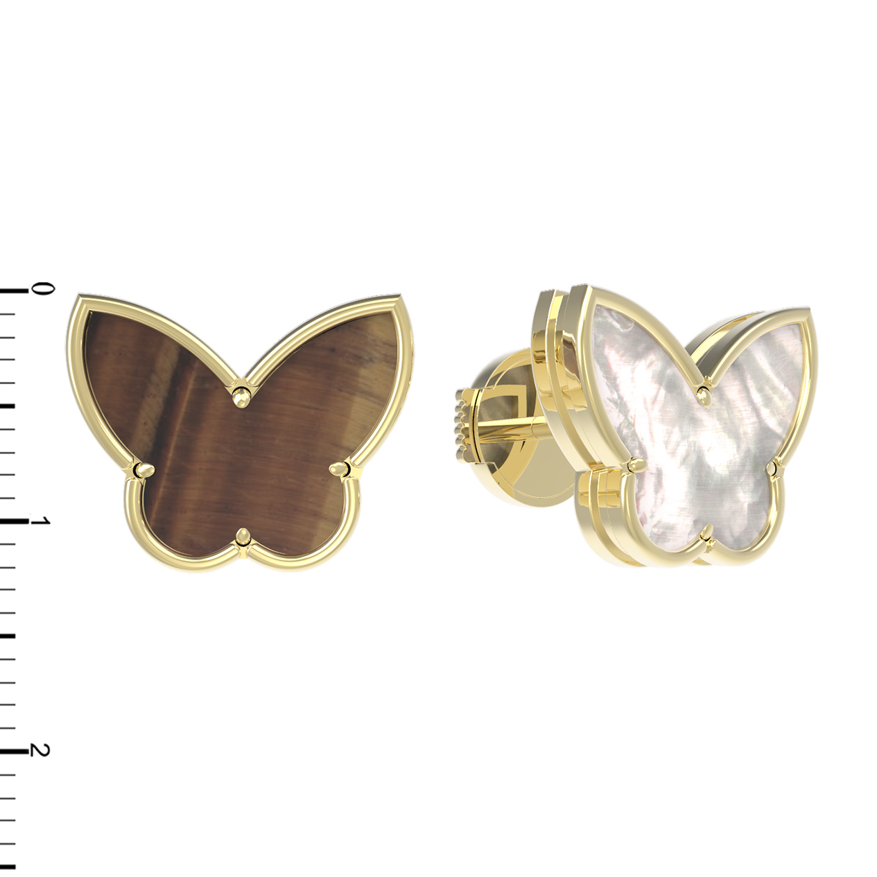 Серьги из лимонного золота c тигровым глазом и перламутром