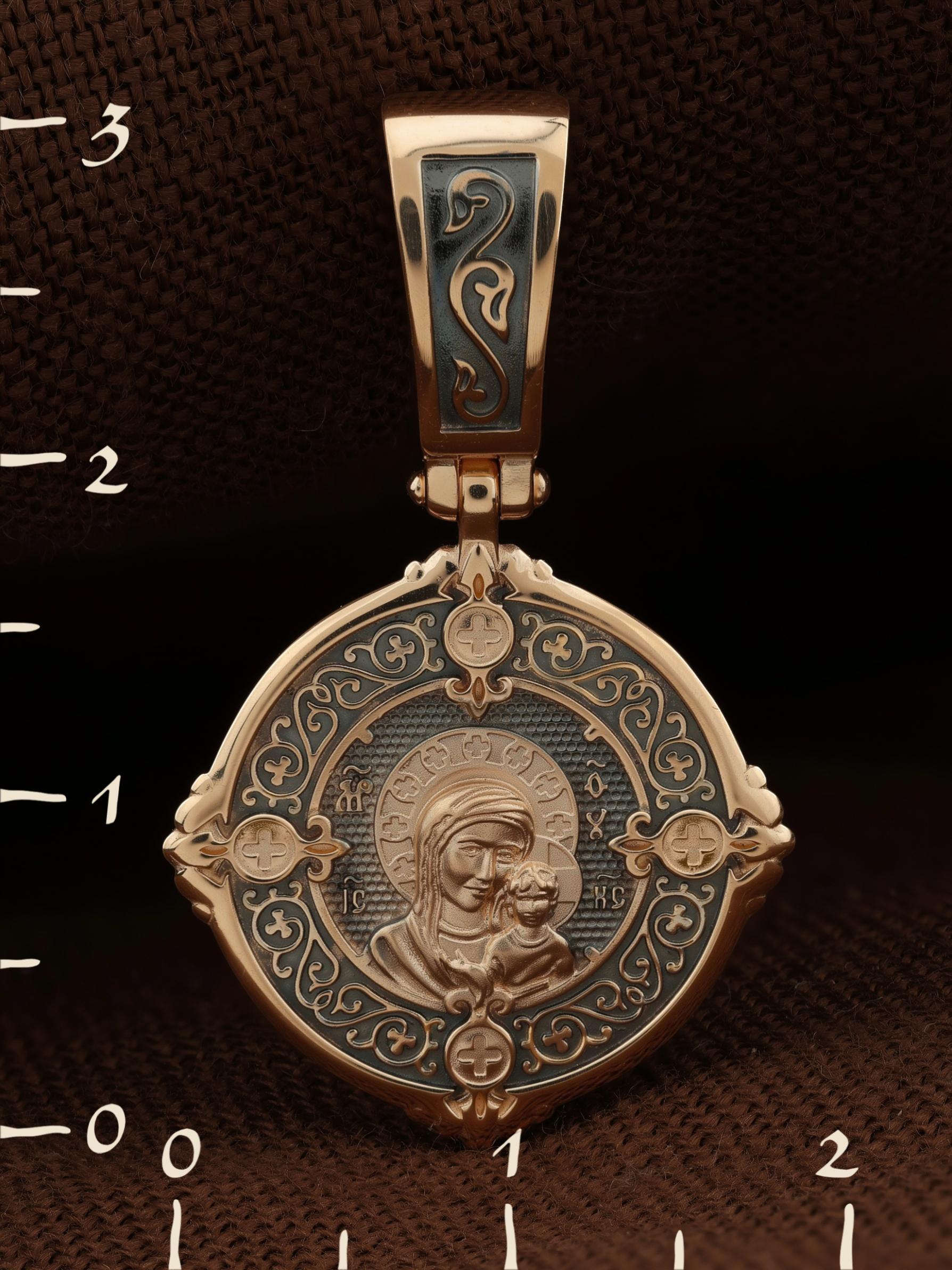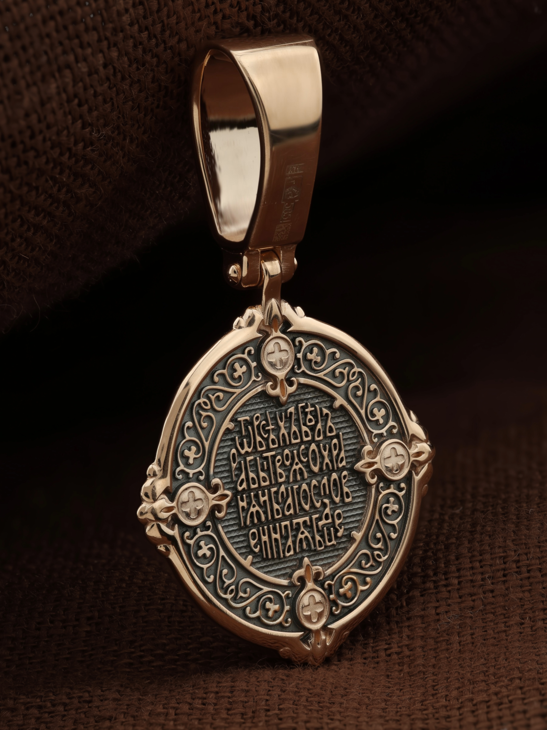 На лицевой части образка изображена Казанская икона Пресвятой Богородицы — одна из самых почитаемых в России чудотворных икон Богородицы. Богословское значение Казанской иконы — указать верующим истинный Путь к спасению, который лежит через Христа. Только Божия Матерь имеет настолько сильное дерзновение к Спасителю, что может ходатайствовать перед Ним за всех верных. Именно этот образ дарится новой повенчанной паре, как хранитель очага и семейная реликвия. Молитва перед Казанской иконой Божьей Матери помогает во всех сложных случаях жизни, в болезнях, во всех печалях, невзгодах, скорбях. Уникальная история появления, чудеса, случившиеся по молитвам православных людей возле образа — все это делает Казанскую Богородицу особенной, среди тысяч других икон.