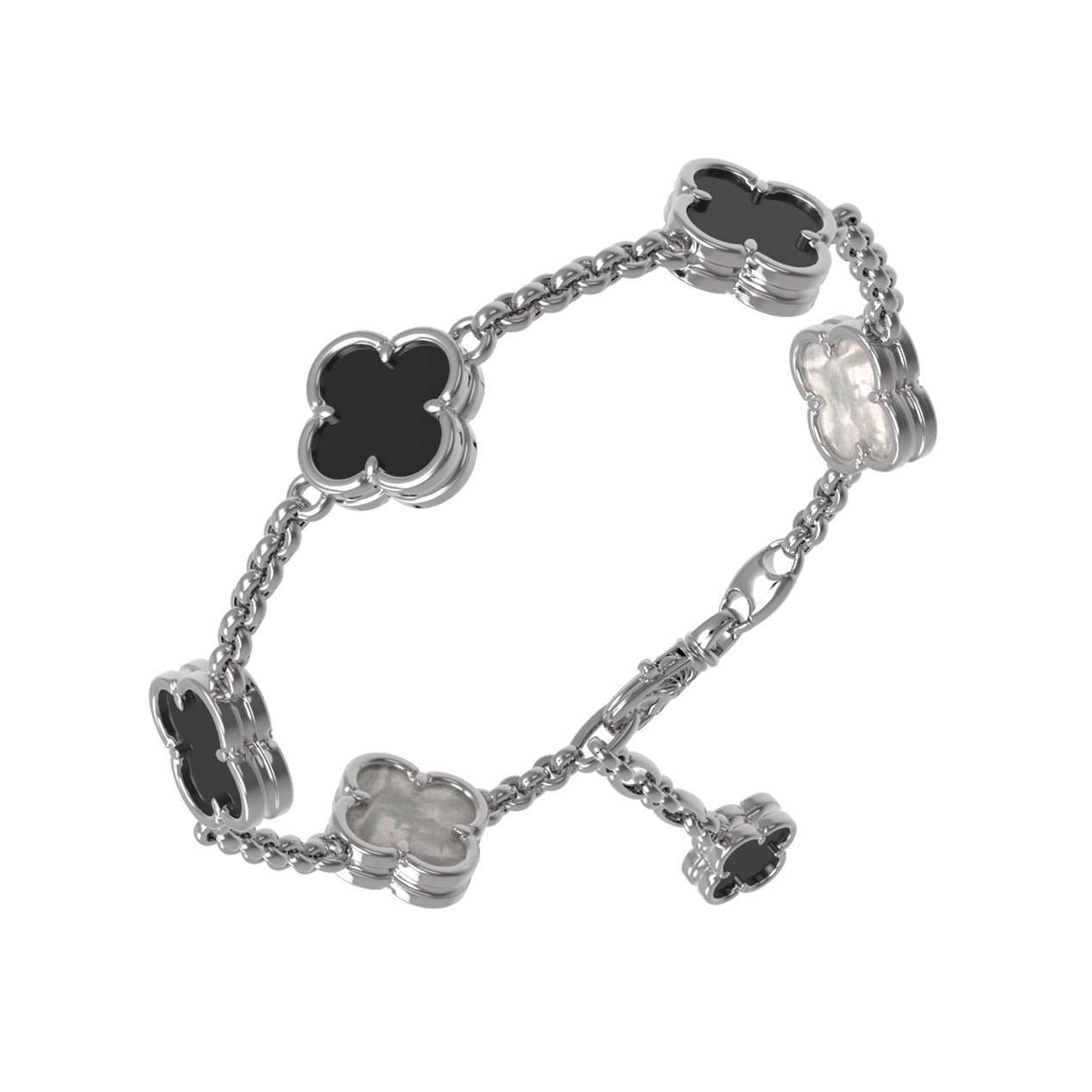Браслет из белого золота c ониксом и перламутром