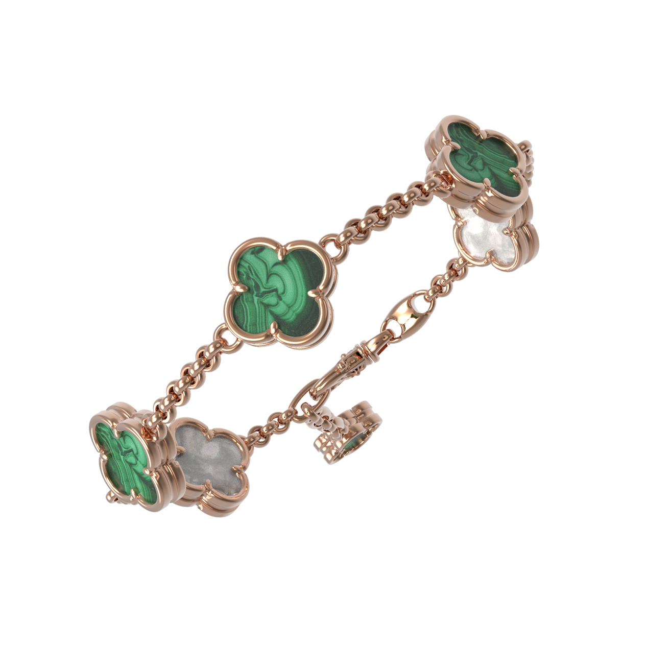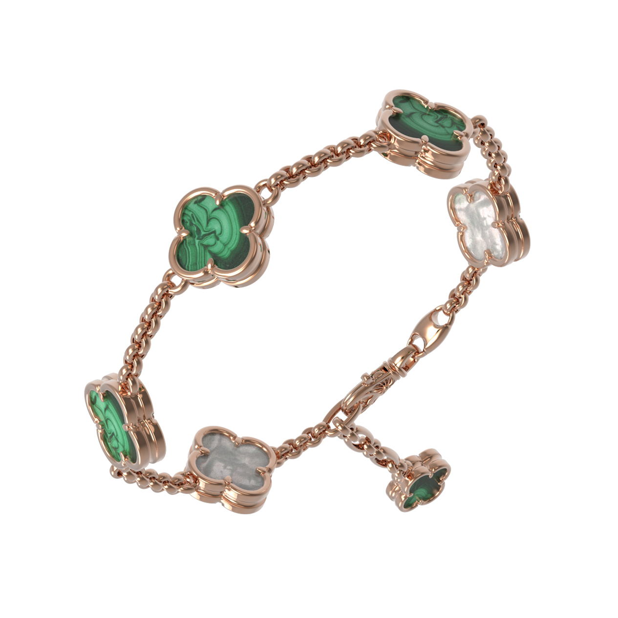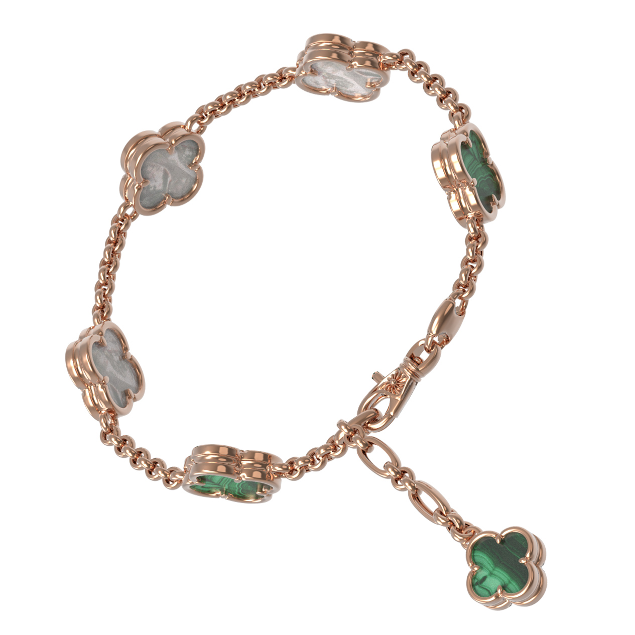 Браслет из золота c малахитом и перламутром