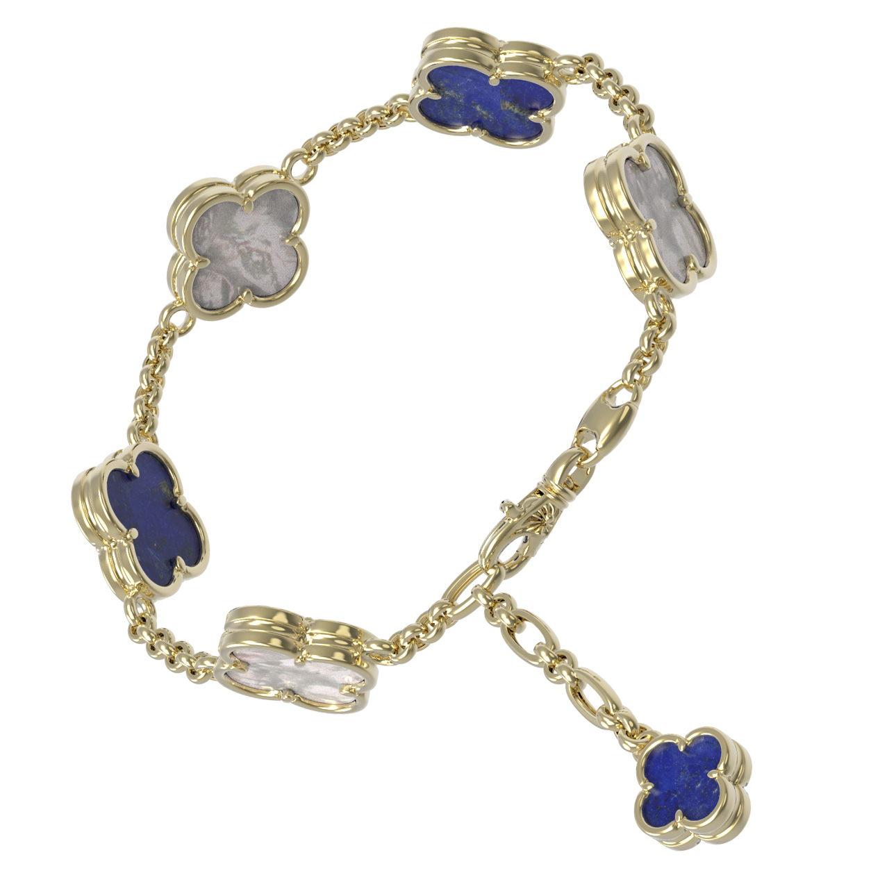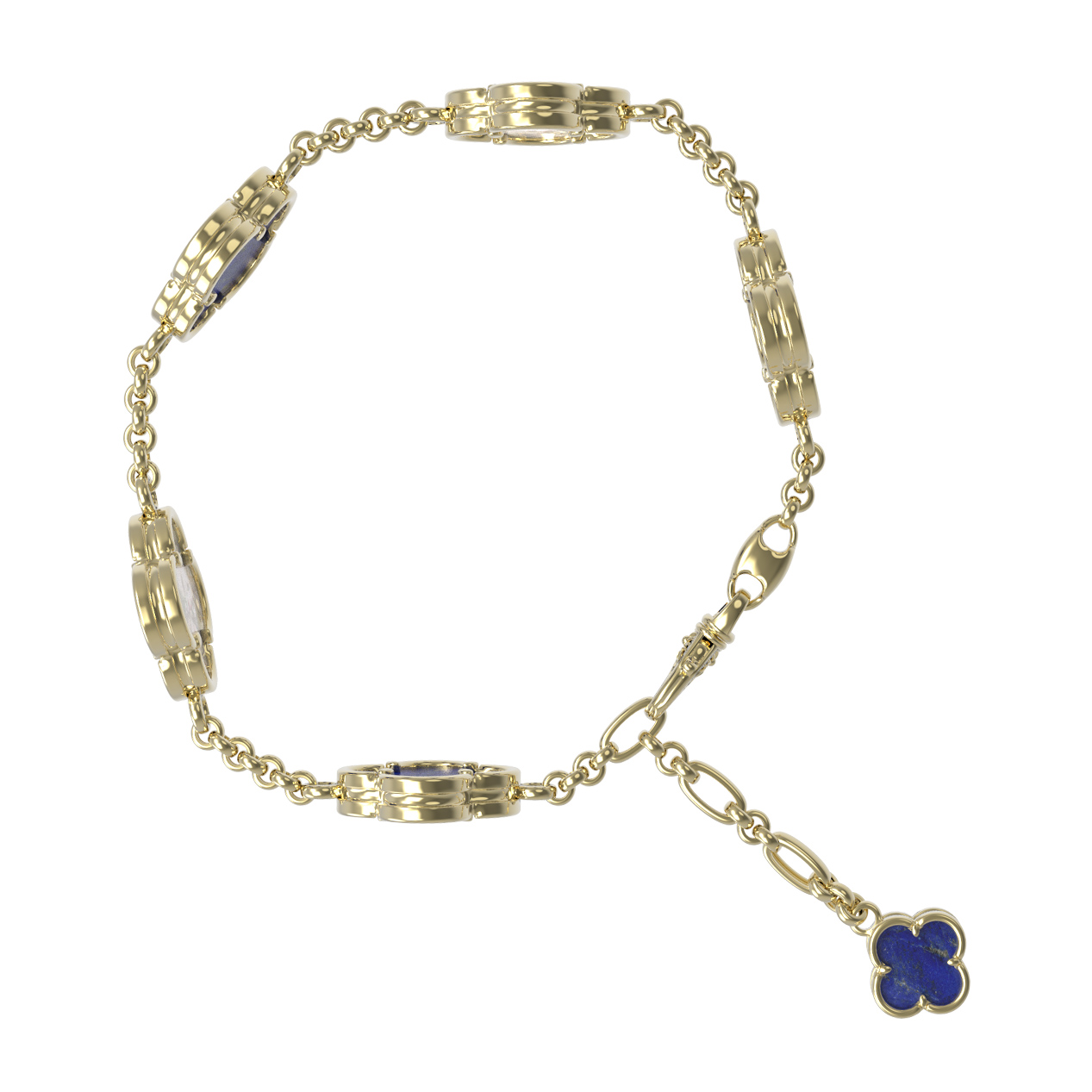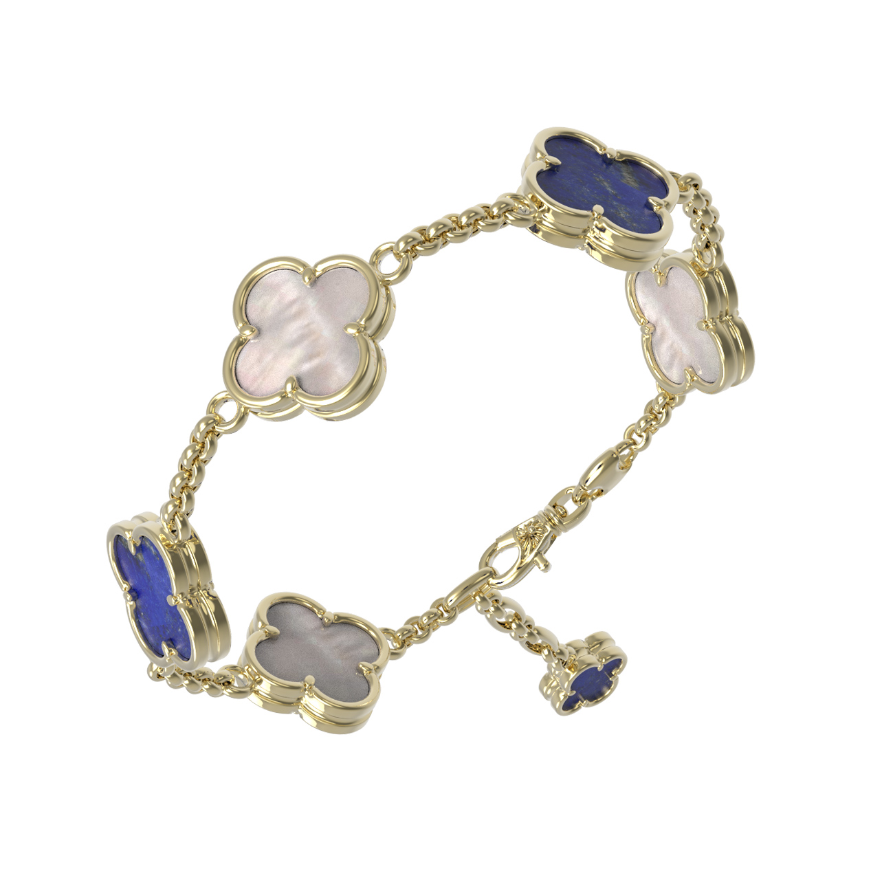 Браслет из лимонного золота c лазуритом и перламутром