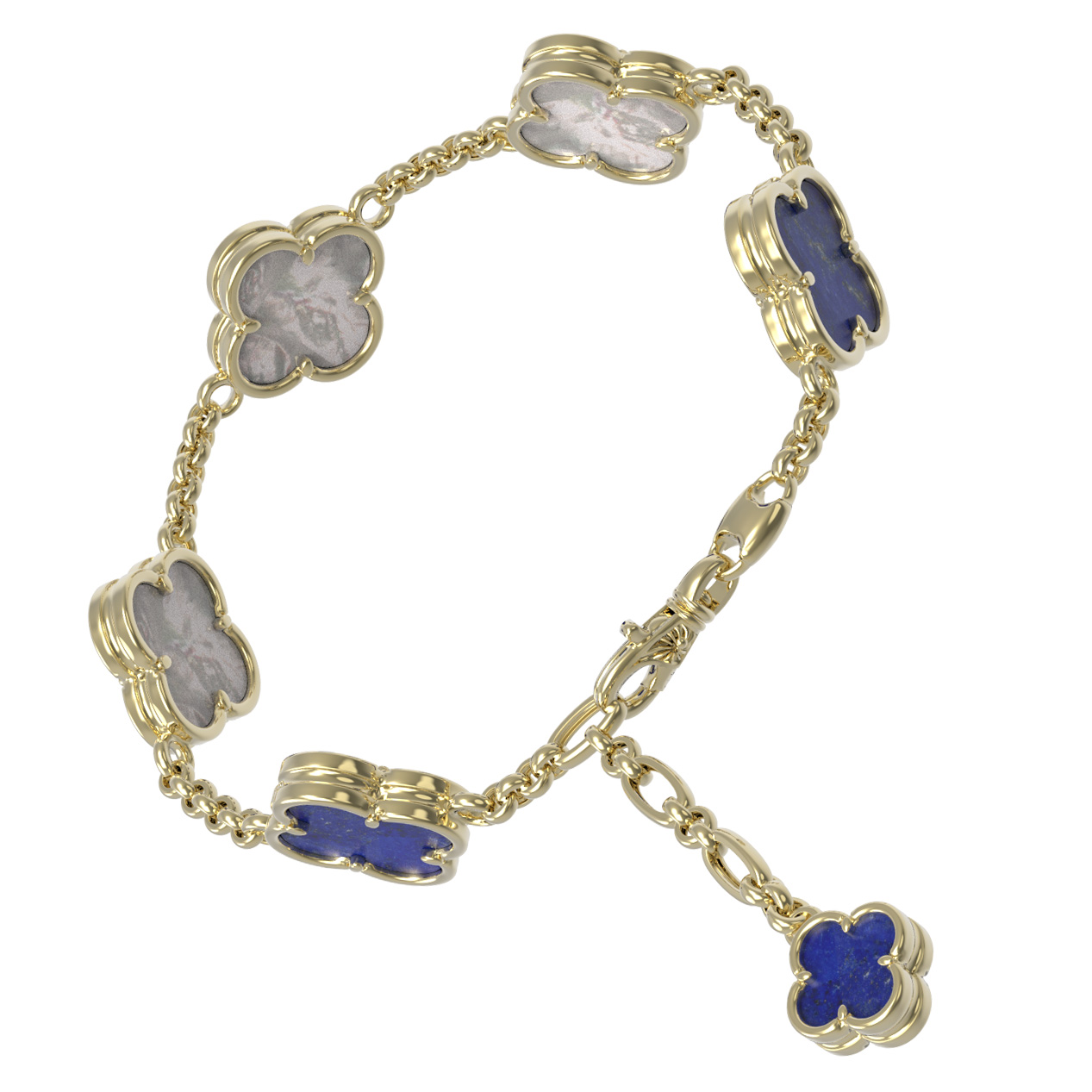 Браслет из лимонного золота c лазуритом и перламутром