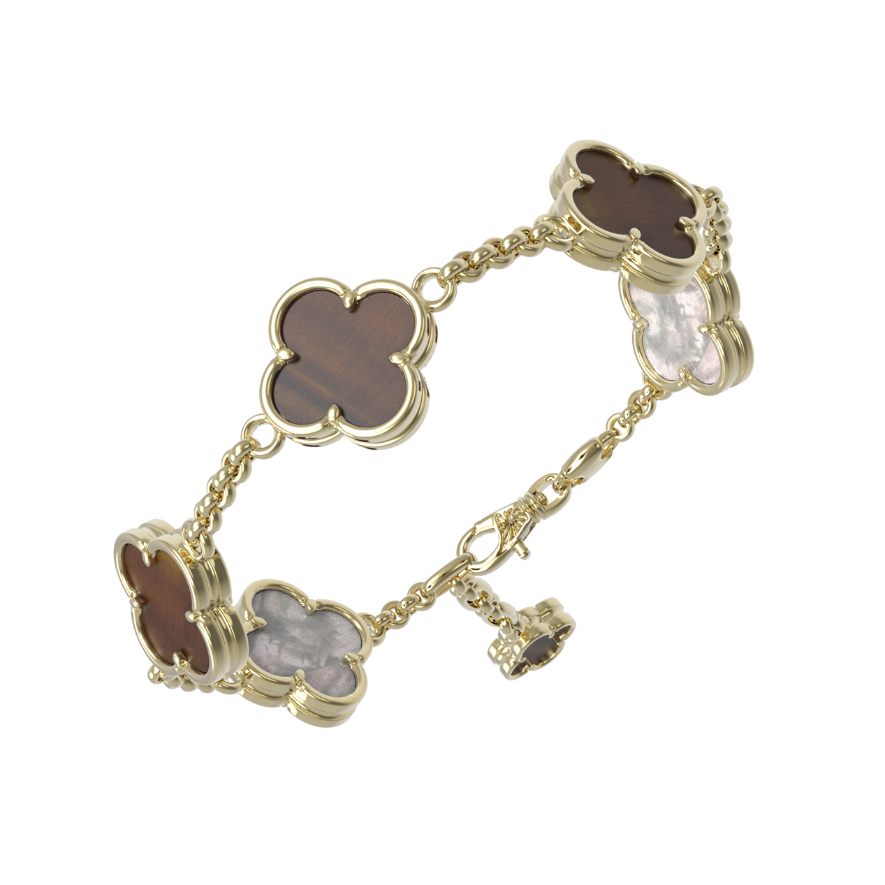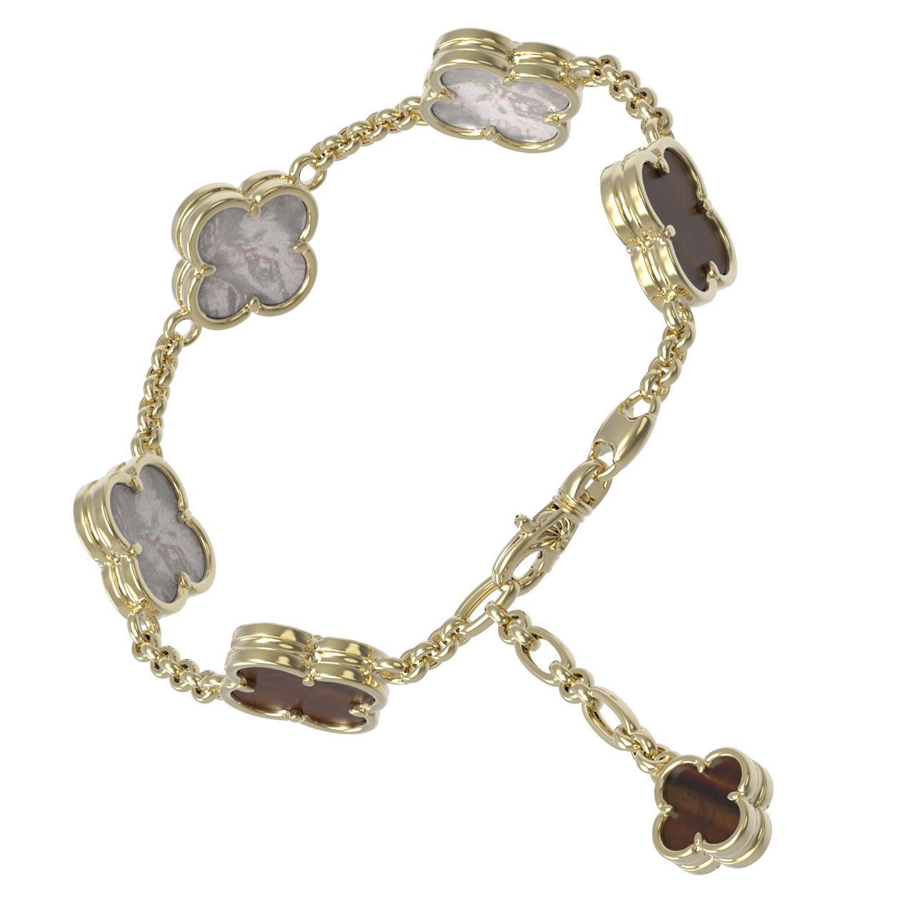 Браслет из лимонного золота c тигровым глазом и перламутром