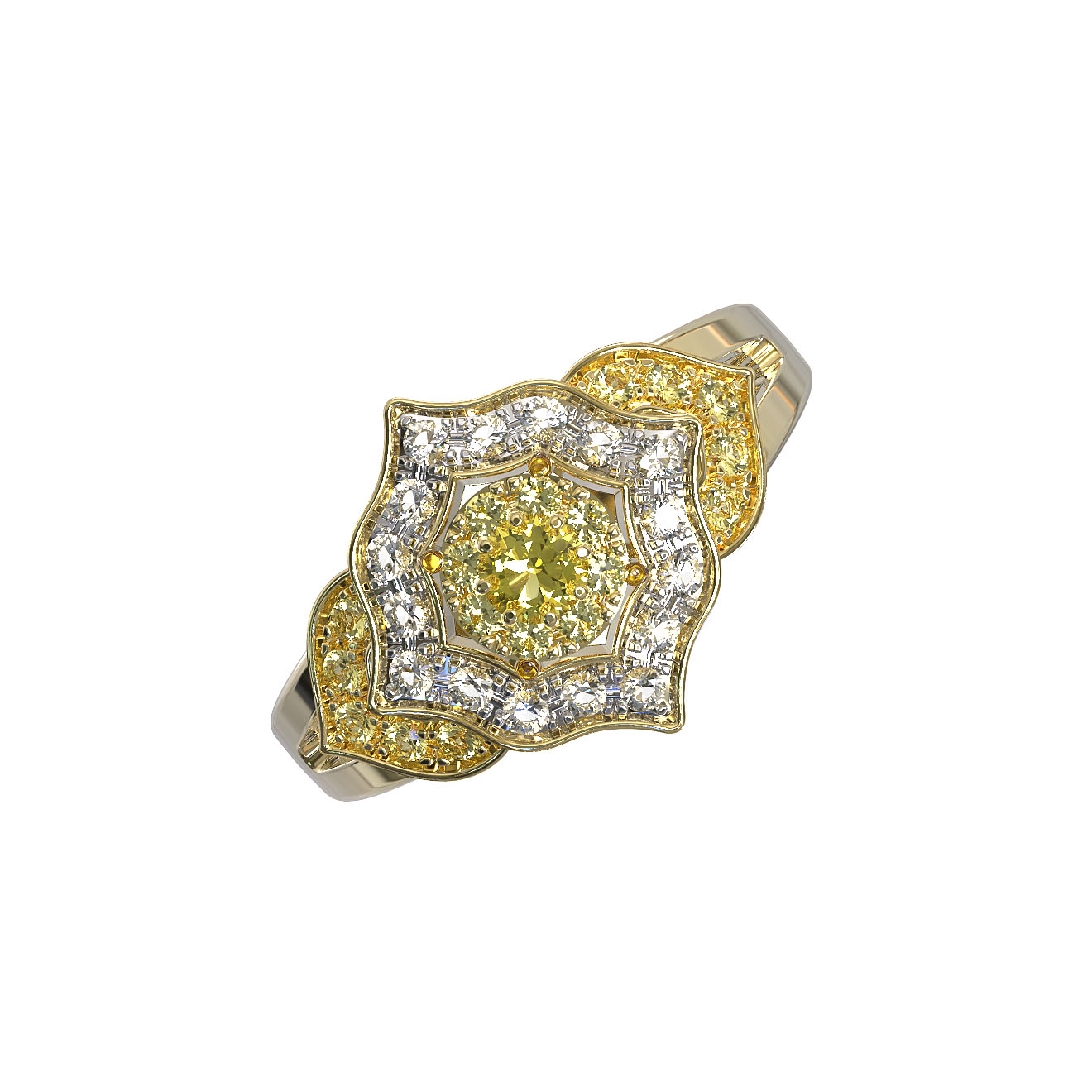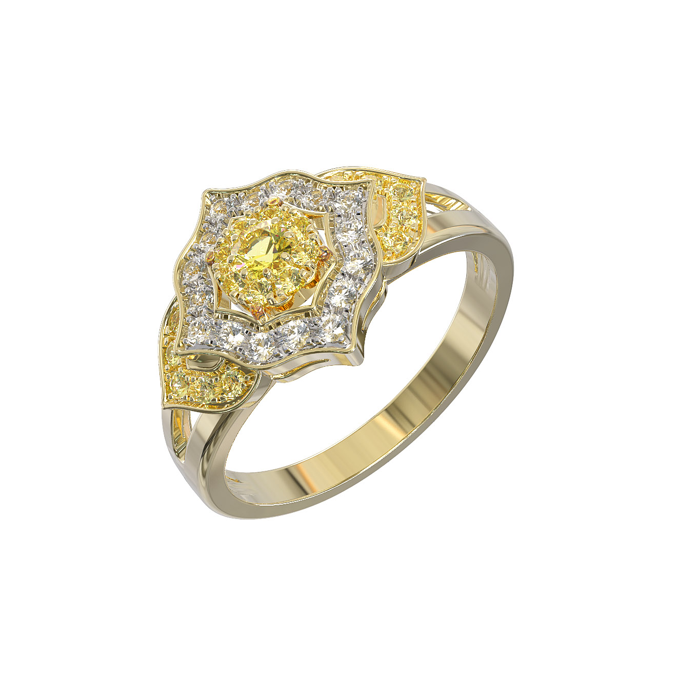 Кольцо из лимонного золота c бриллиантами и сапфиром