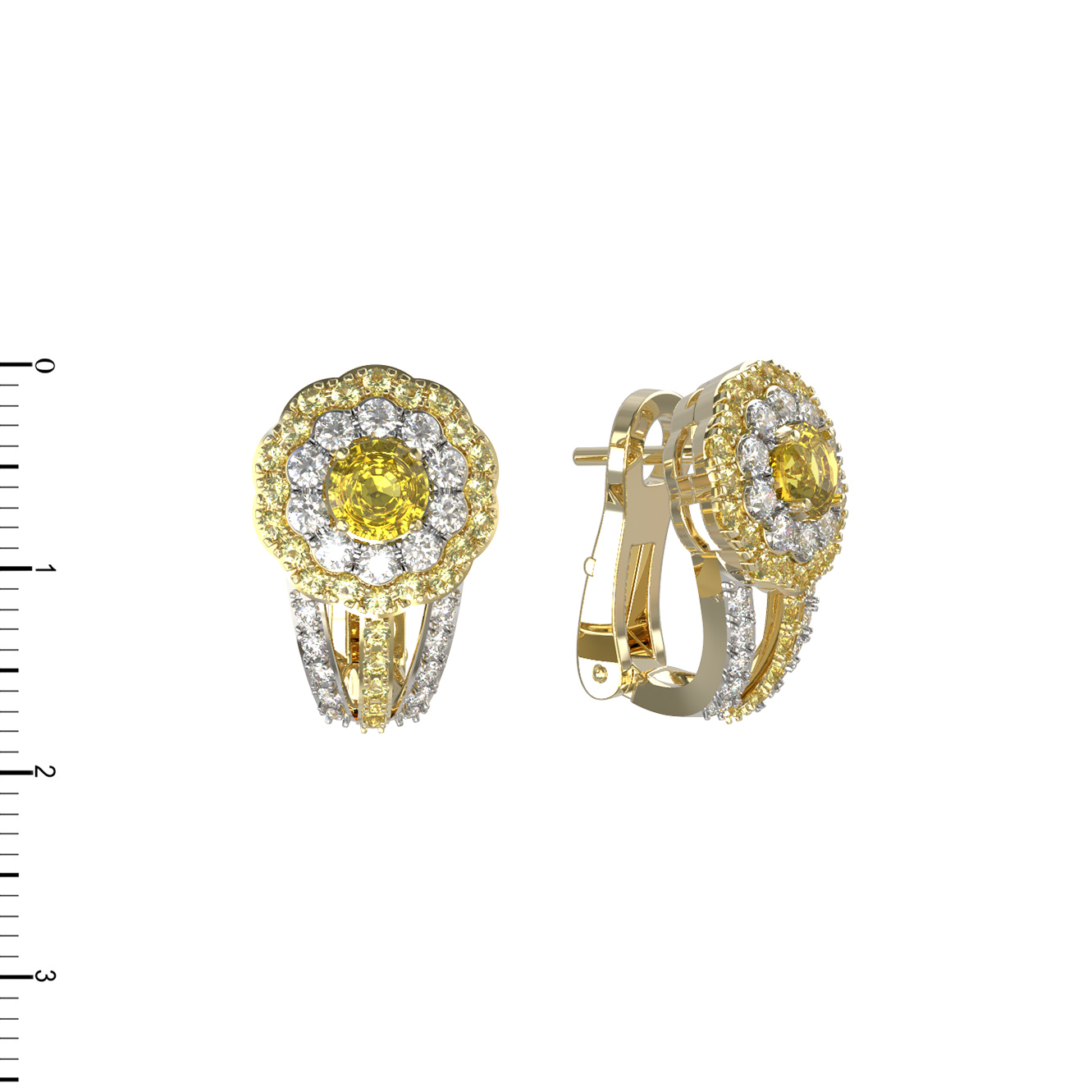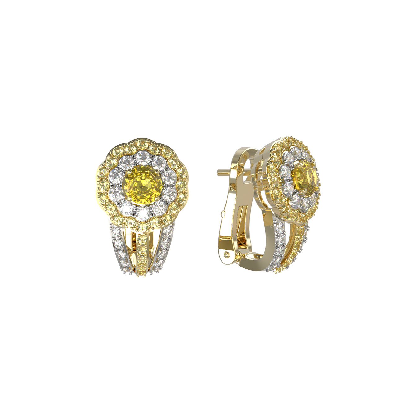 Серьги из лимонного золота c бриллиантами и сапфиром