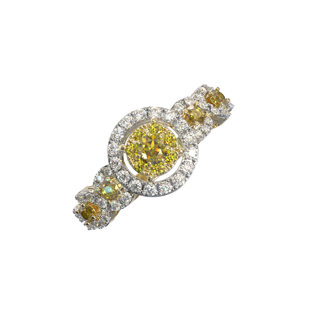 Кольцо из лимонного золота c бриллиантами и сапфиром