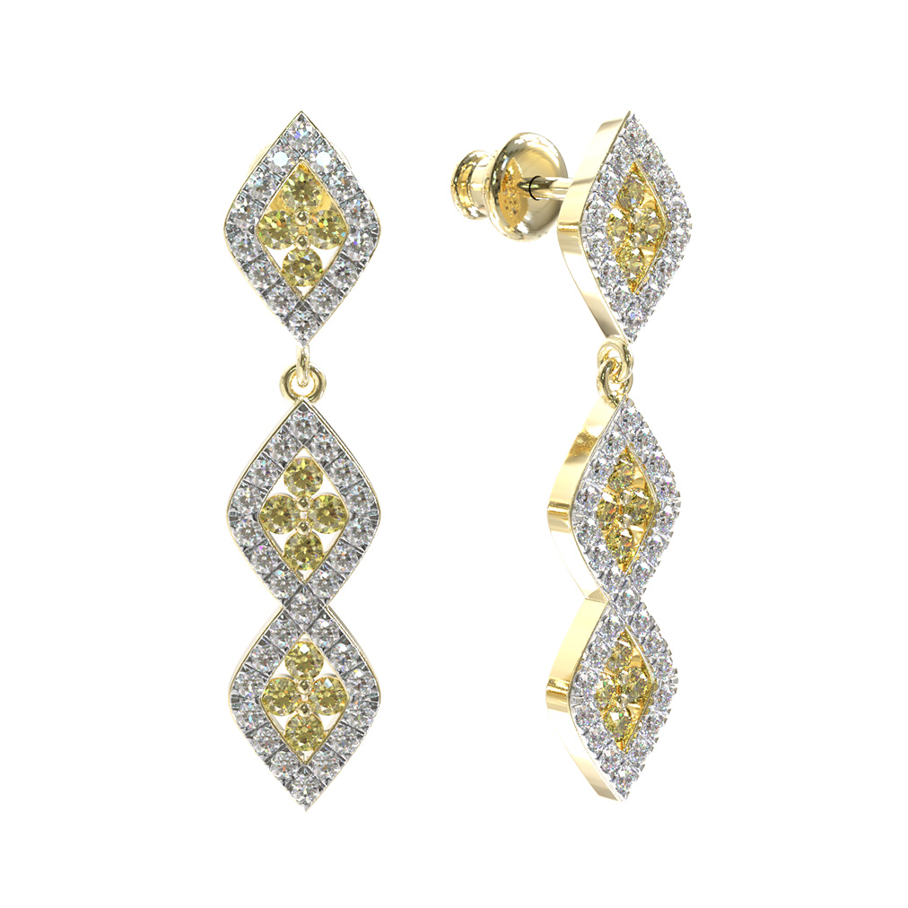 Серьги из лимонного золота c бриллиантами и сапфиром