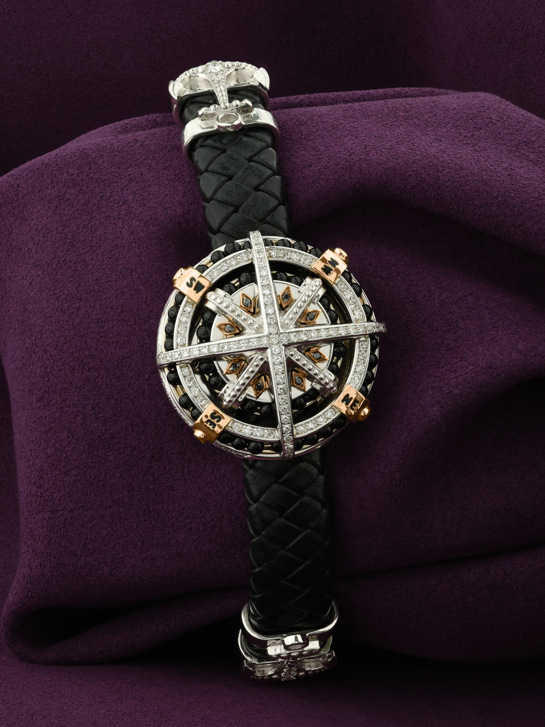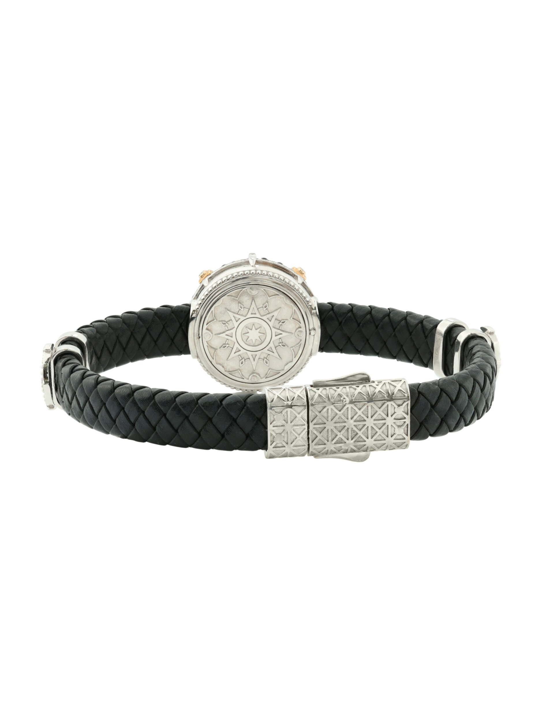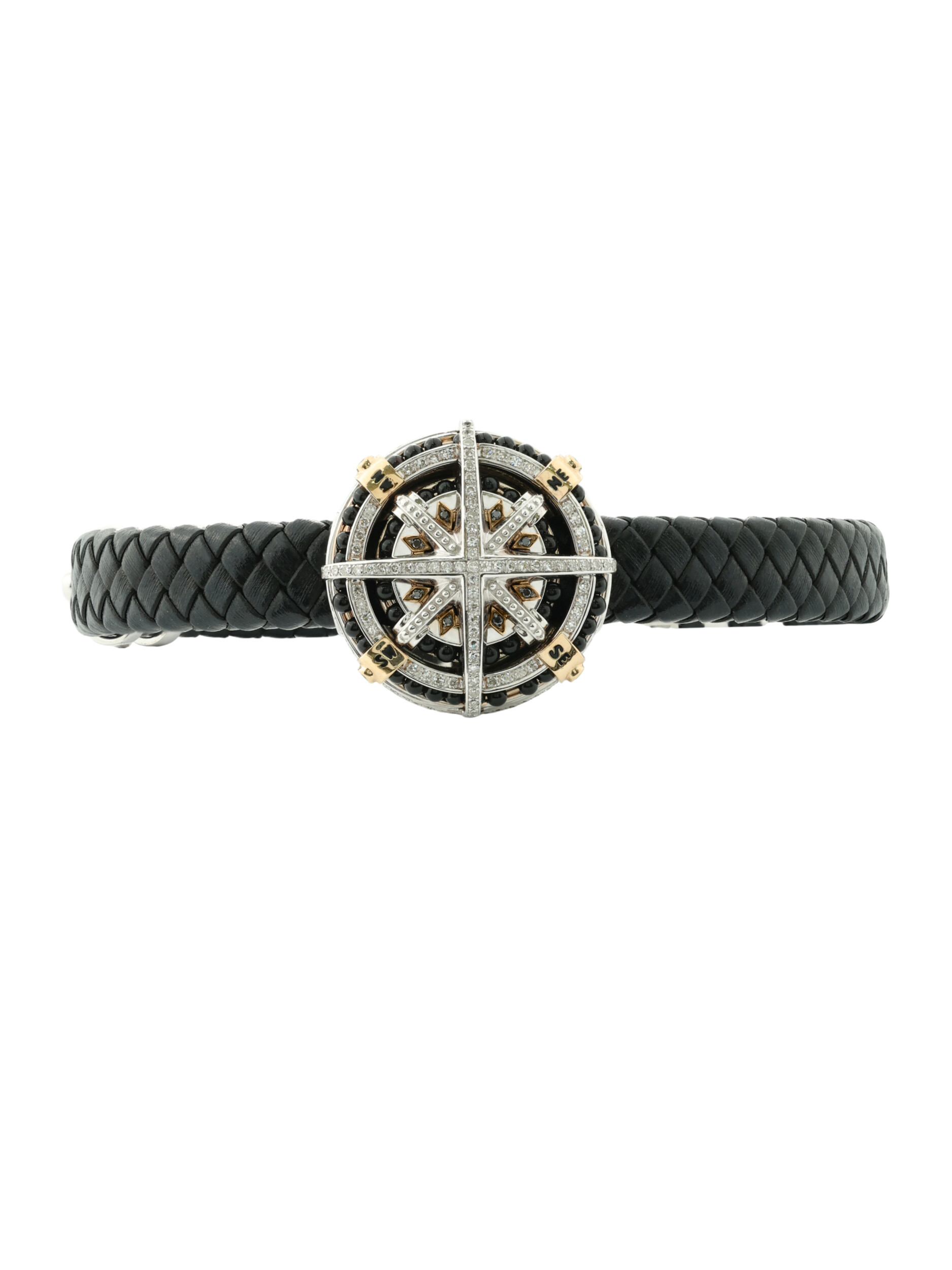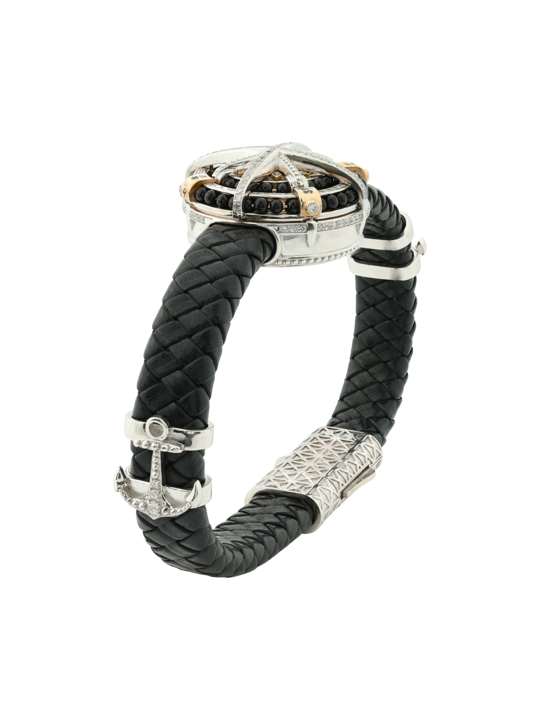 Браслет из белого золота c эмалью, бриллиантами, кожаным шнурком и ониксом