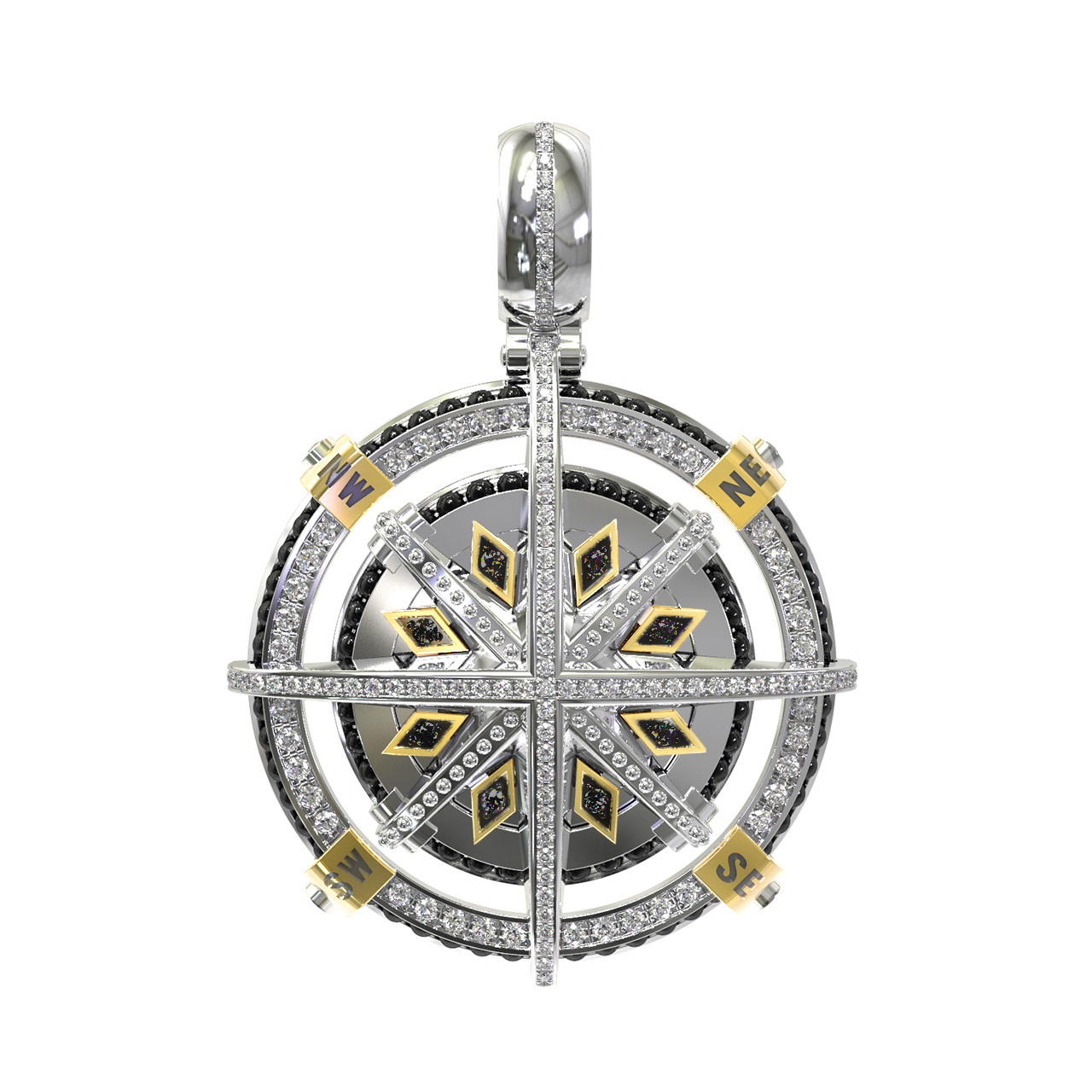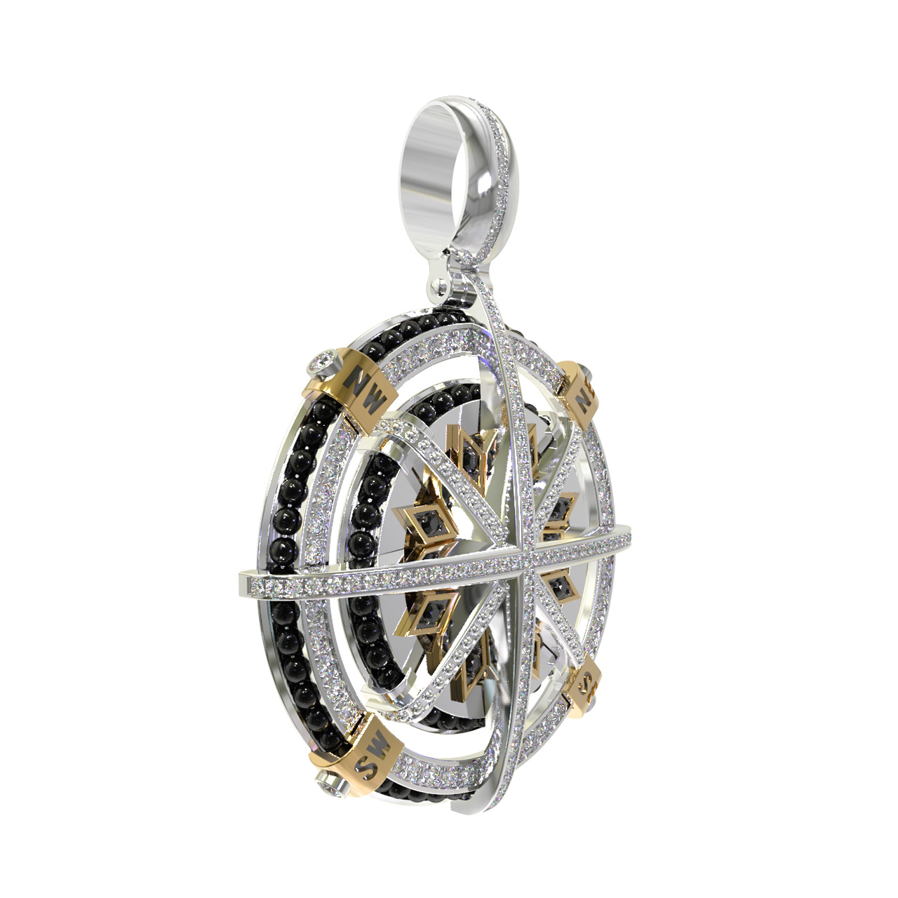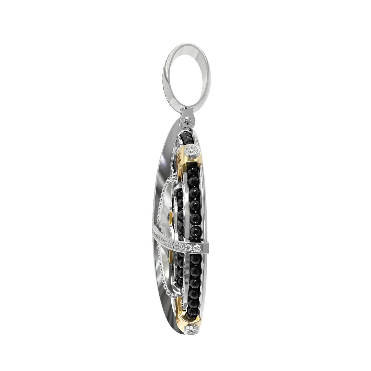Подвеска из белого золота c эмалью, бриллиантами и ониксом