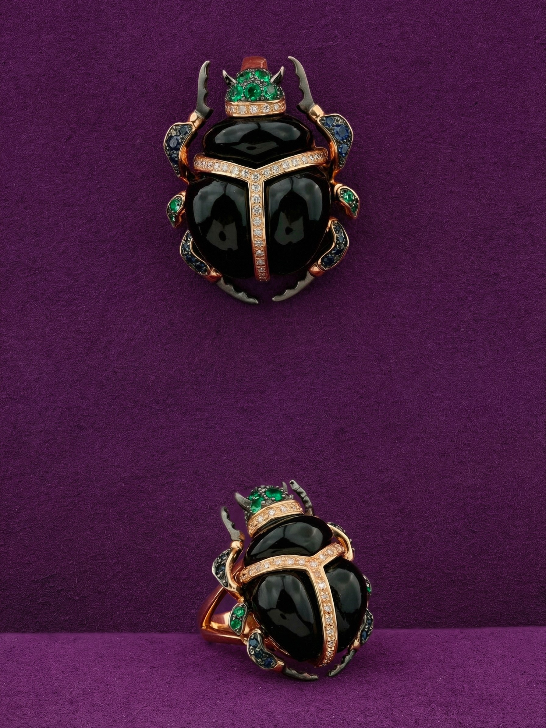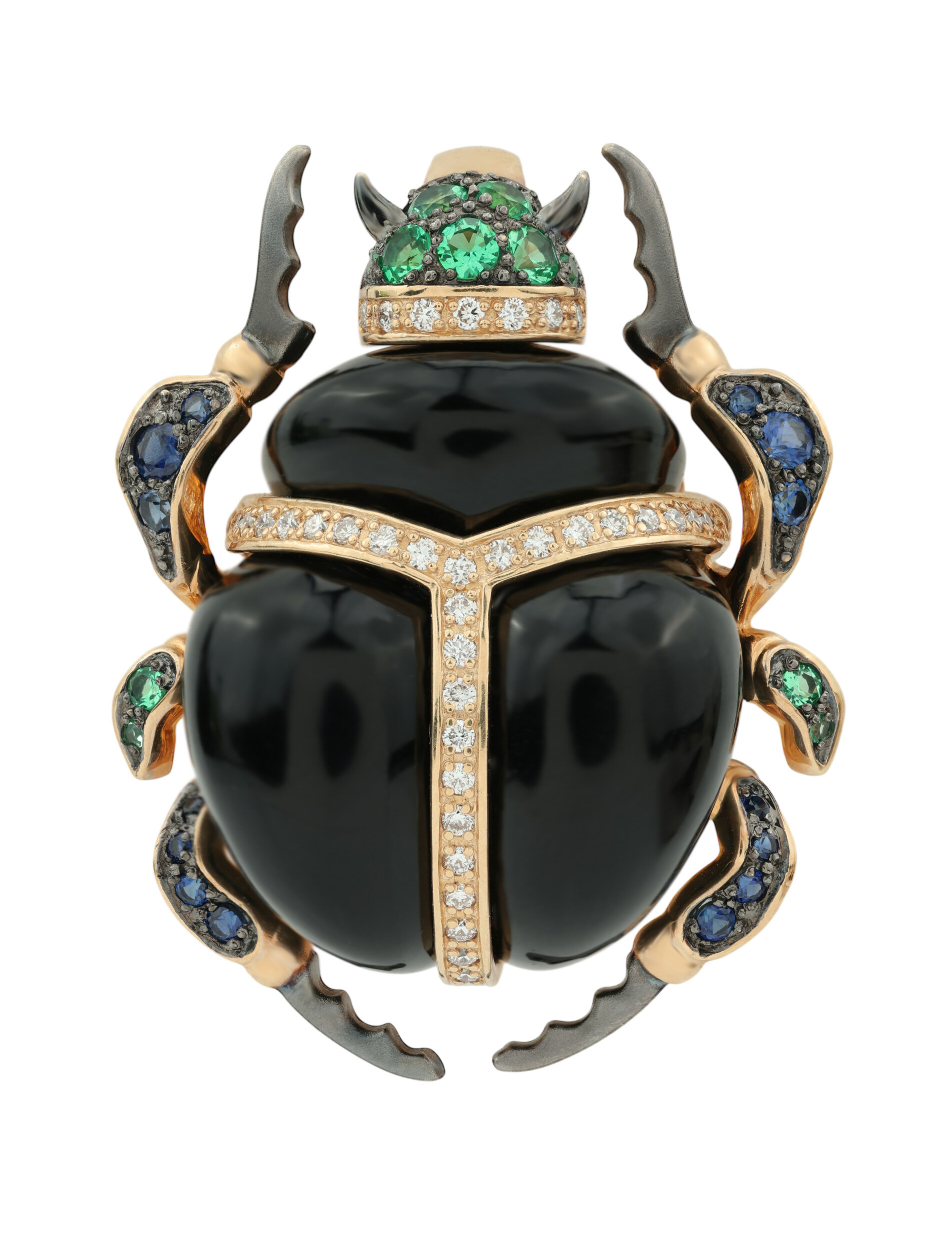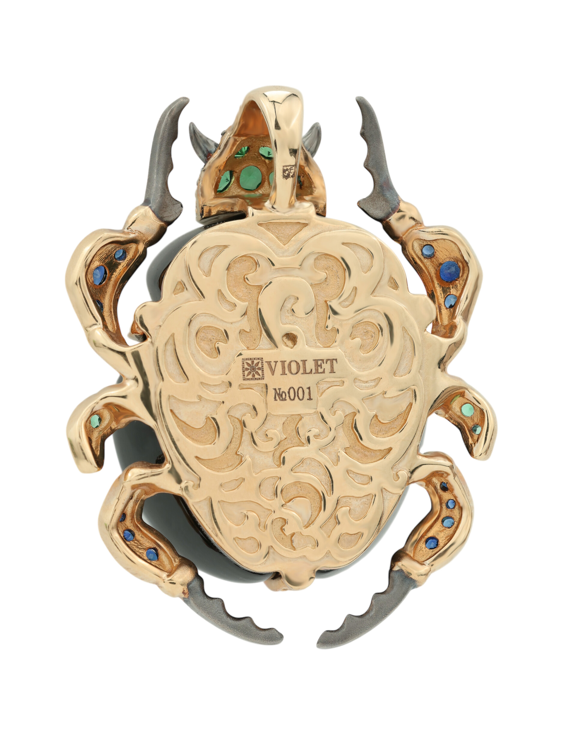 Подвеска из золота c бриллиантами, сапфиром, изумрудом и ониксом