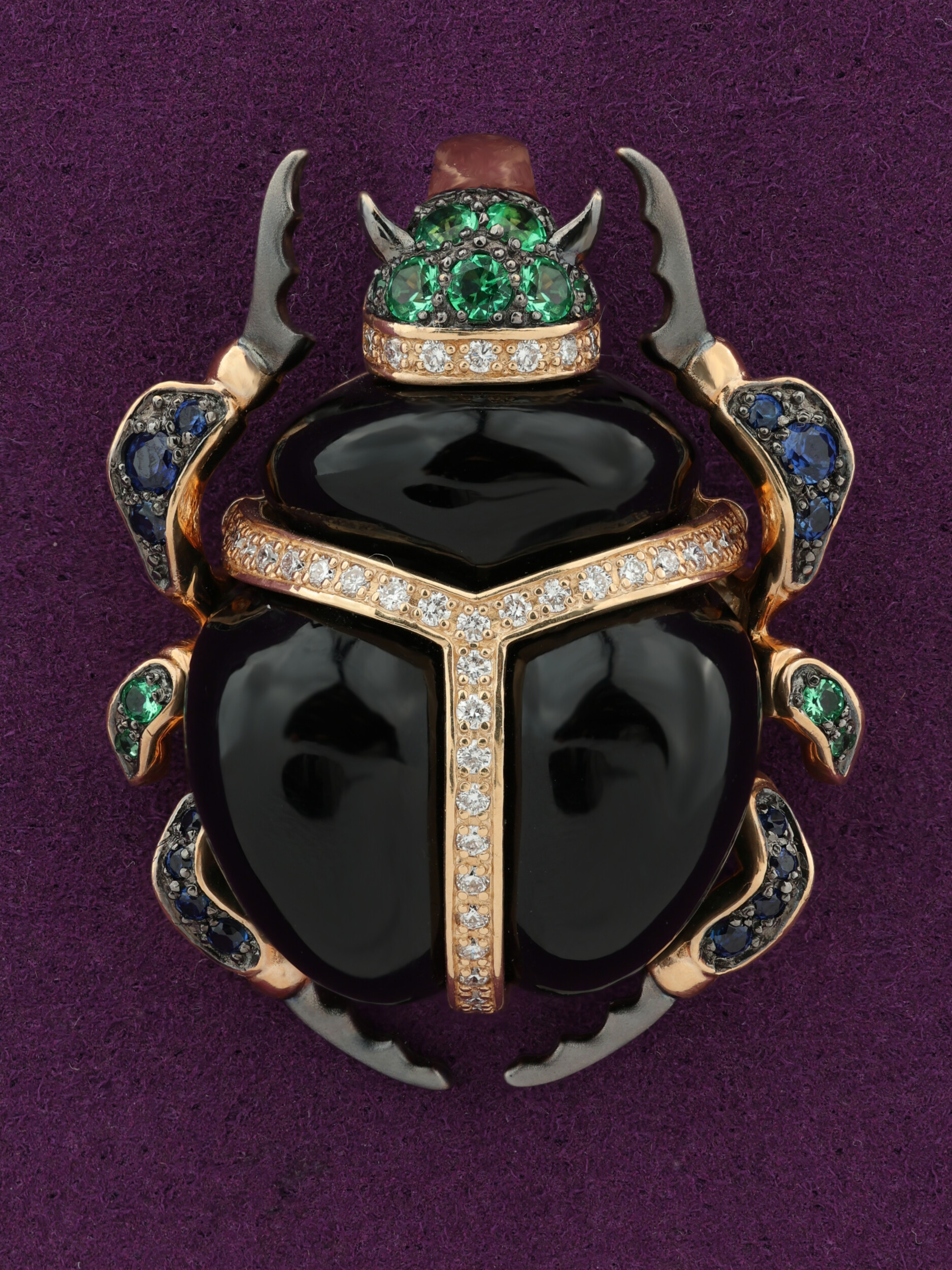 Подвеска из золота c бриллиантами, сапфиром, изумрудом и ониксом
