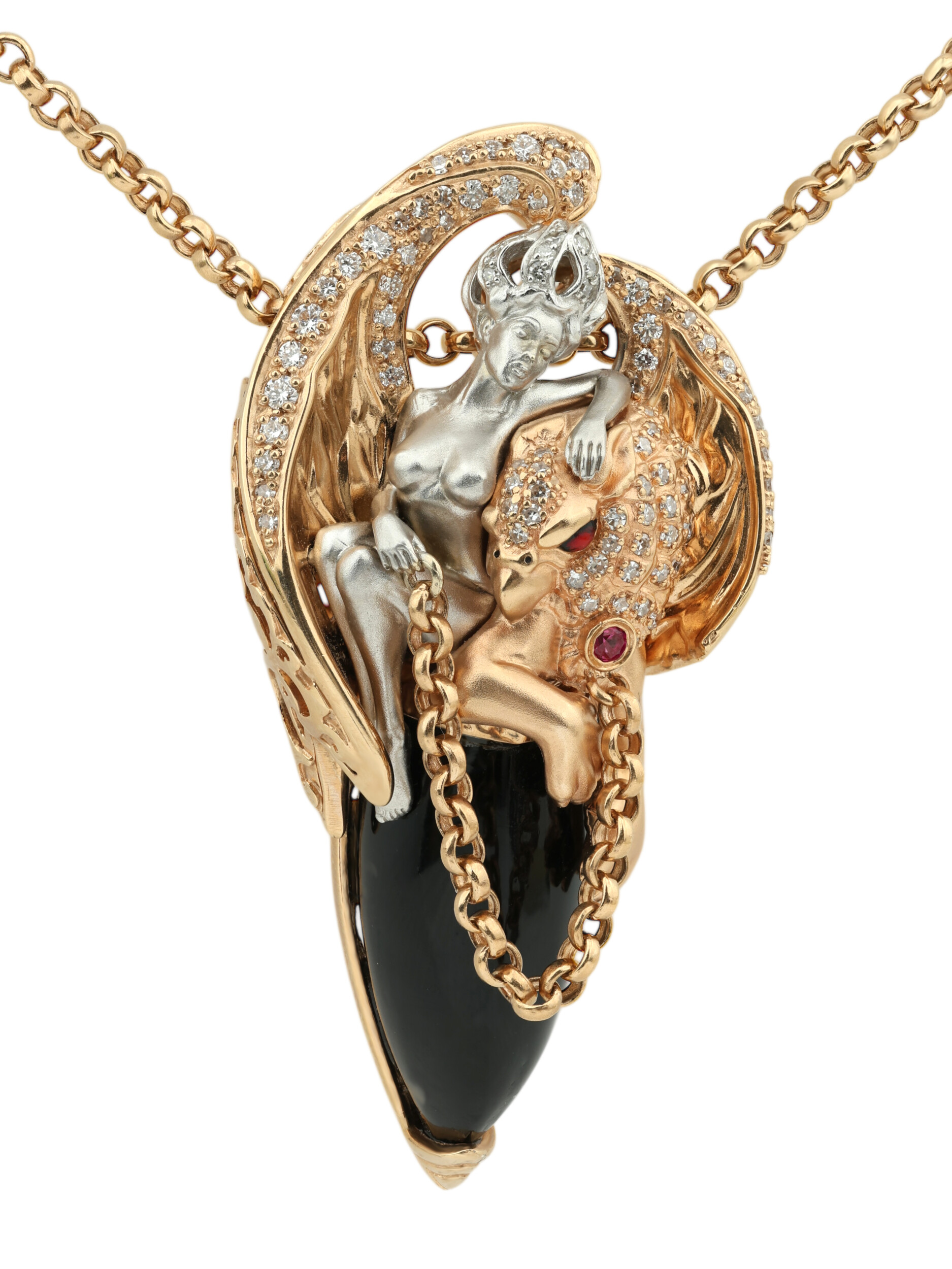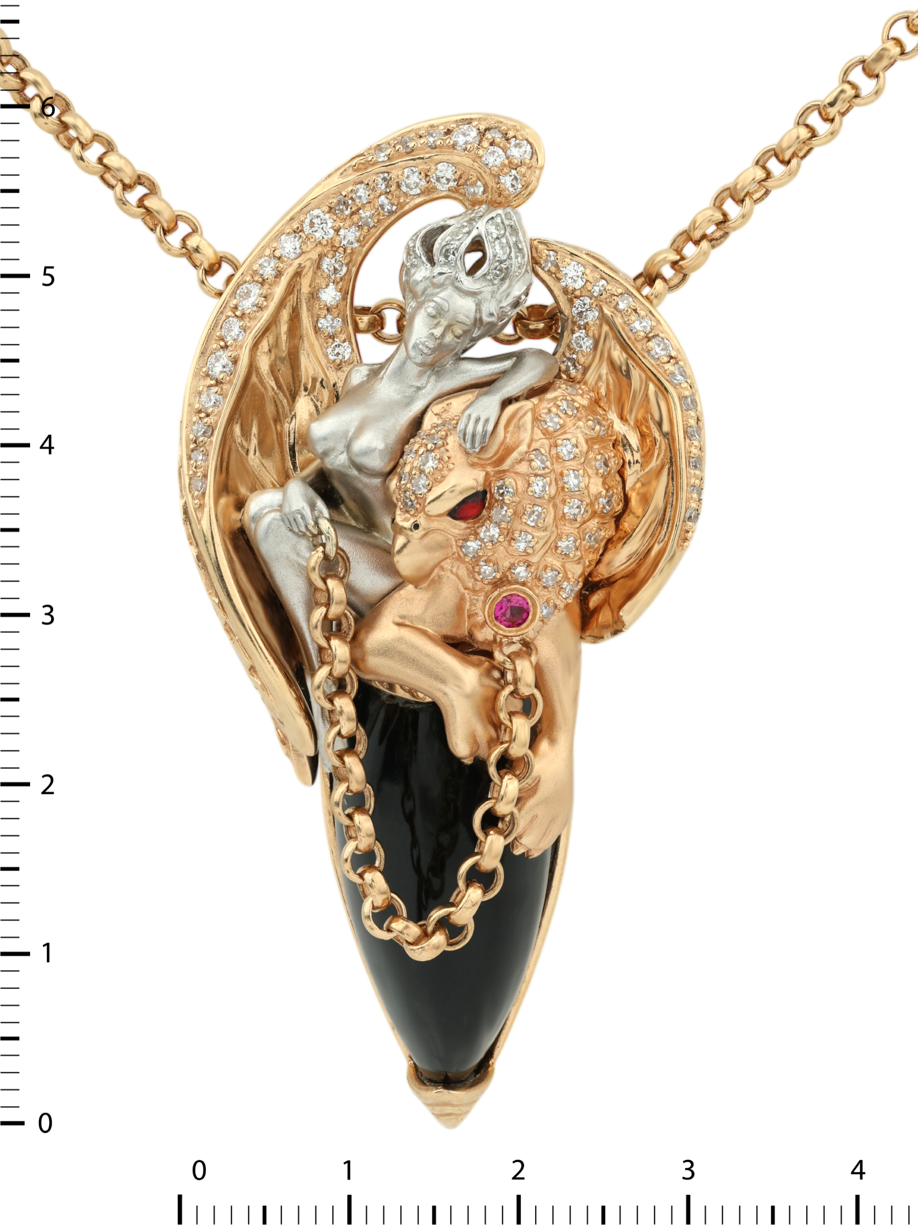 Колье из золота c эмалью, бриллиантами, рубином и ониксом