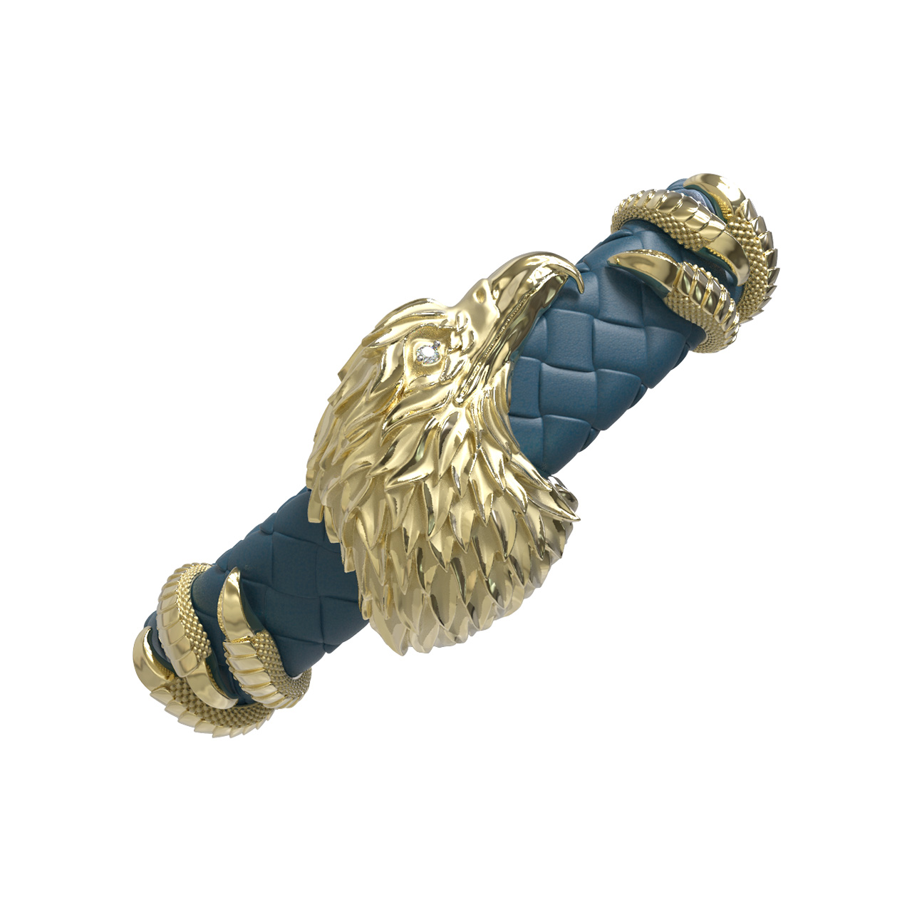 Браслет из лимонного золота c бриллиантами и кожаным шнурком
