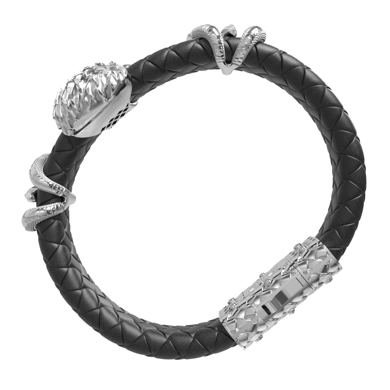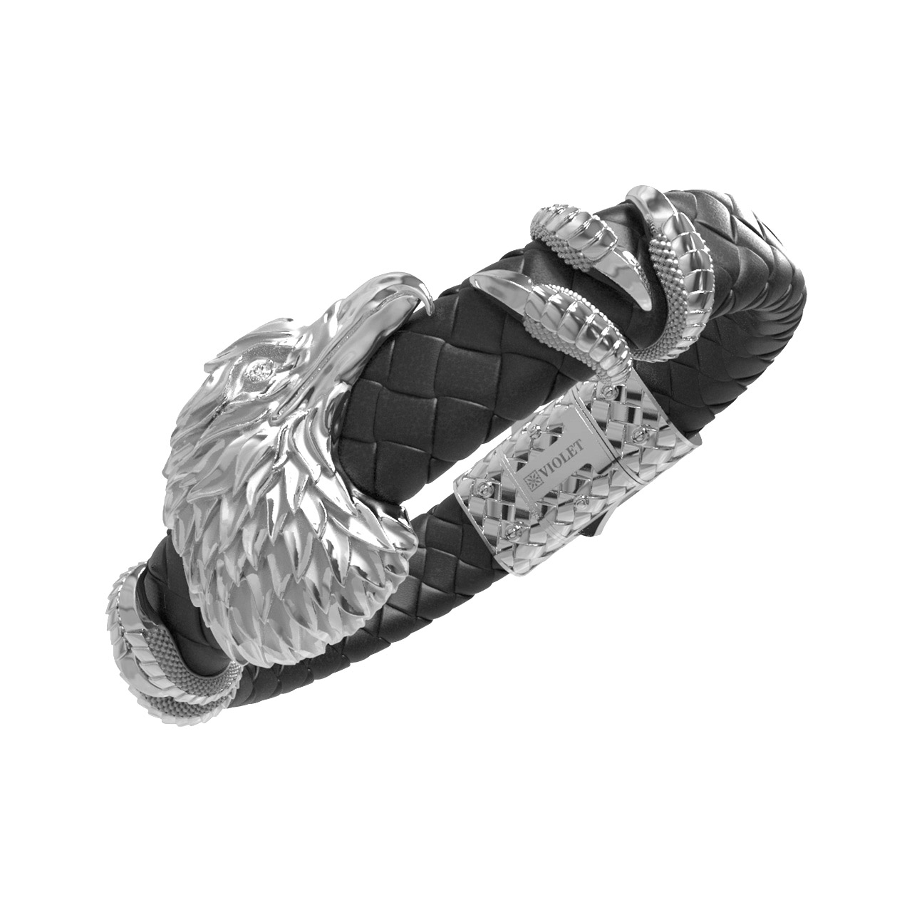 Браслет из белого золота c бриллиантами и кожаным шнурком