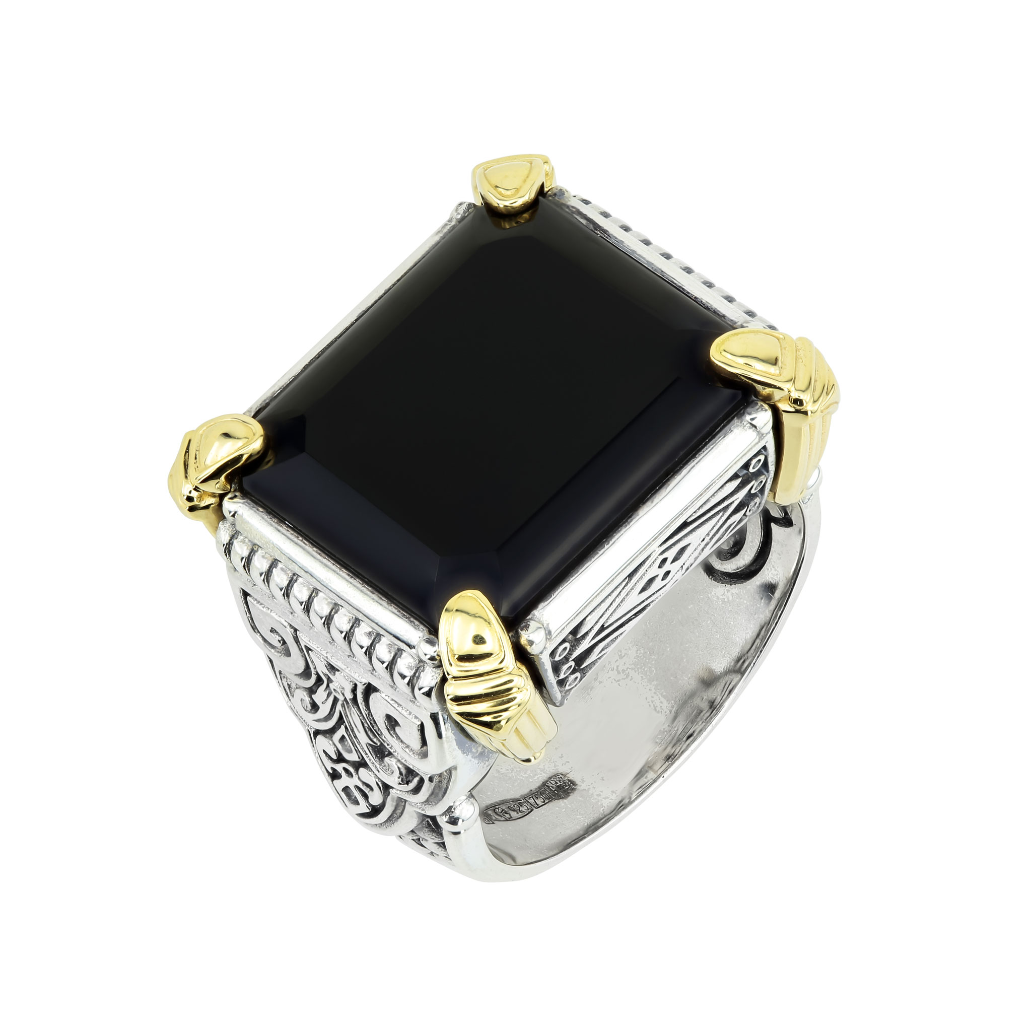 Кольцо из серебра и золота c ониксом и рубином