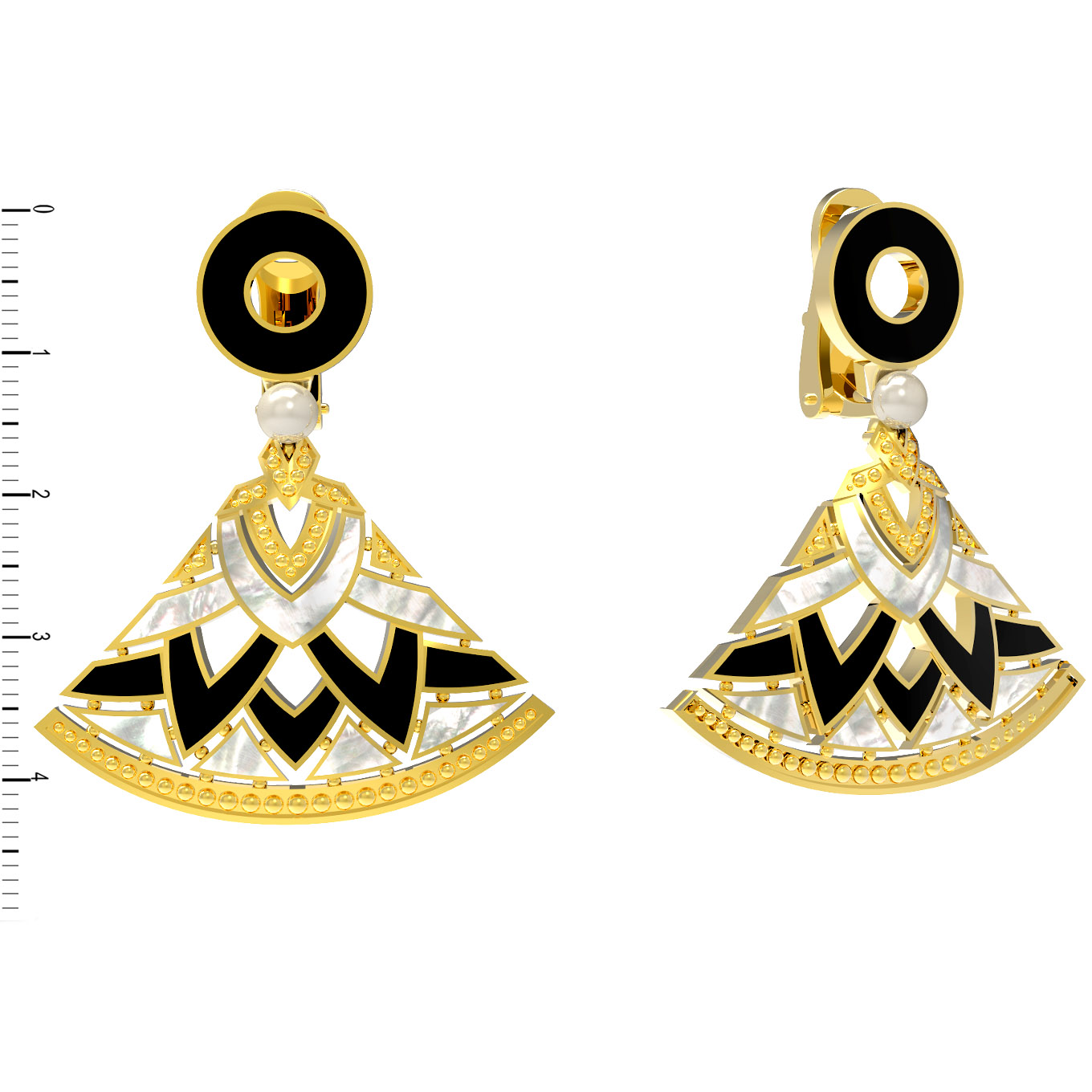 Серьги из лимонного золота c жемчугом, ониксом и перламутром