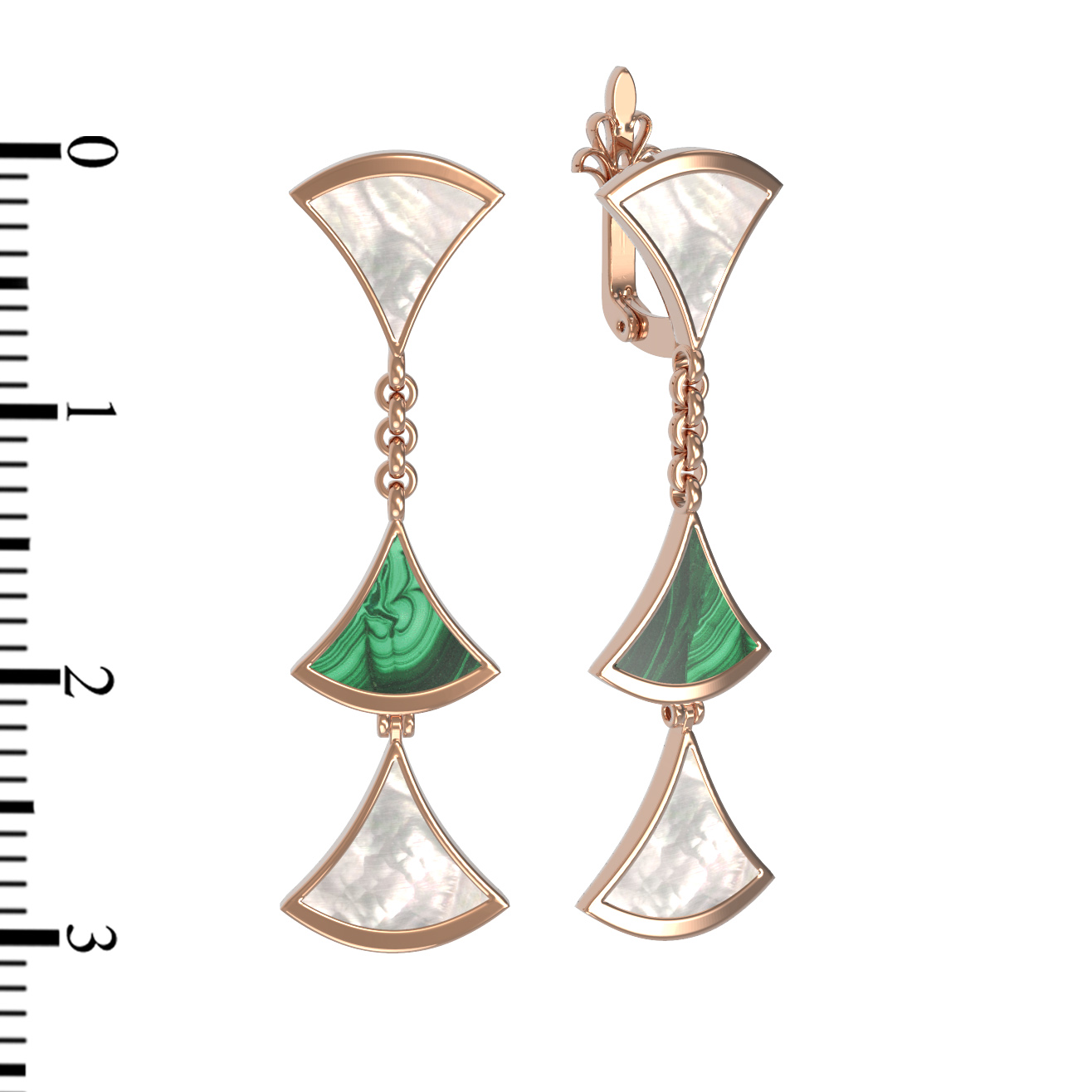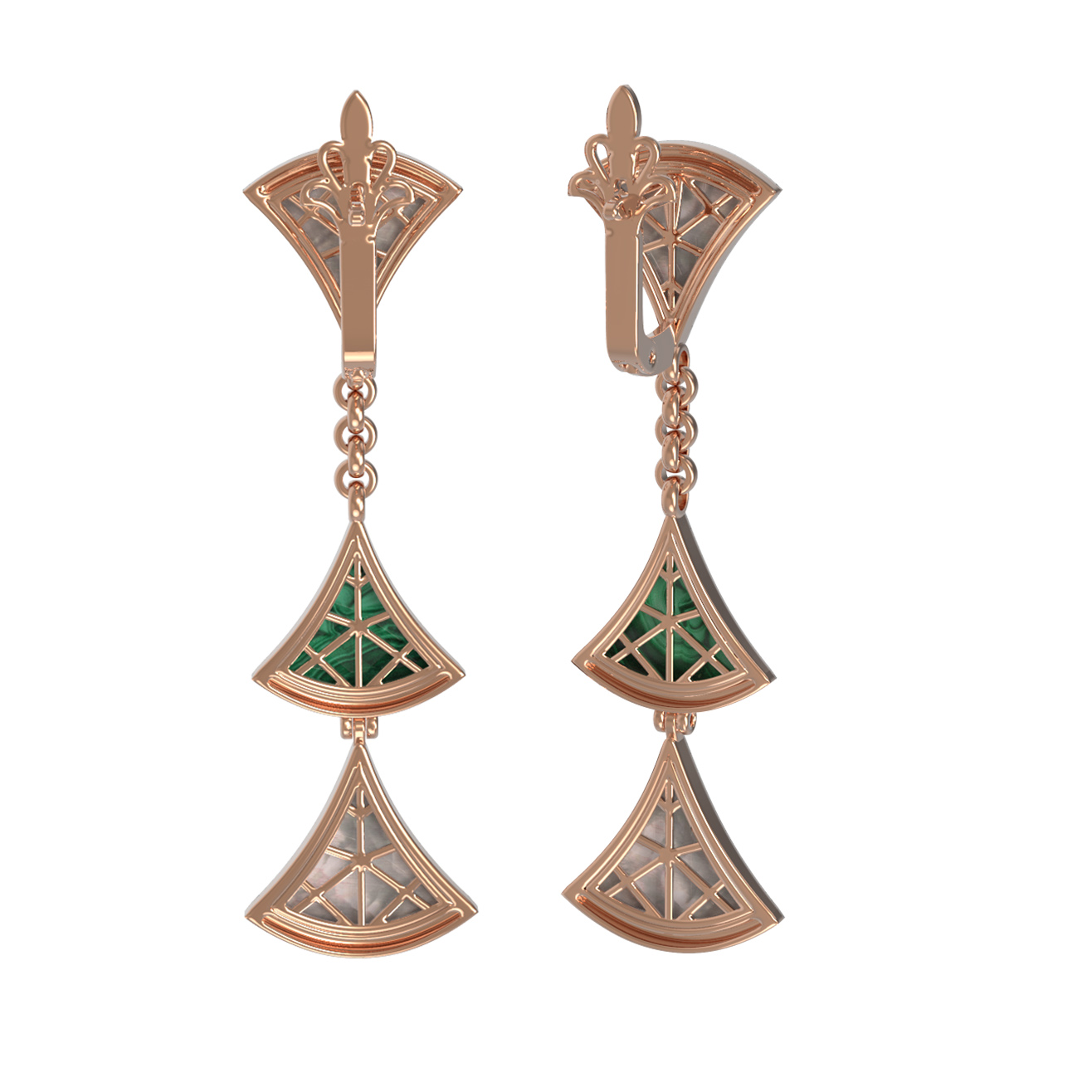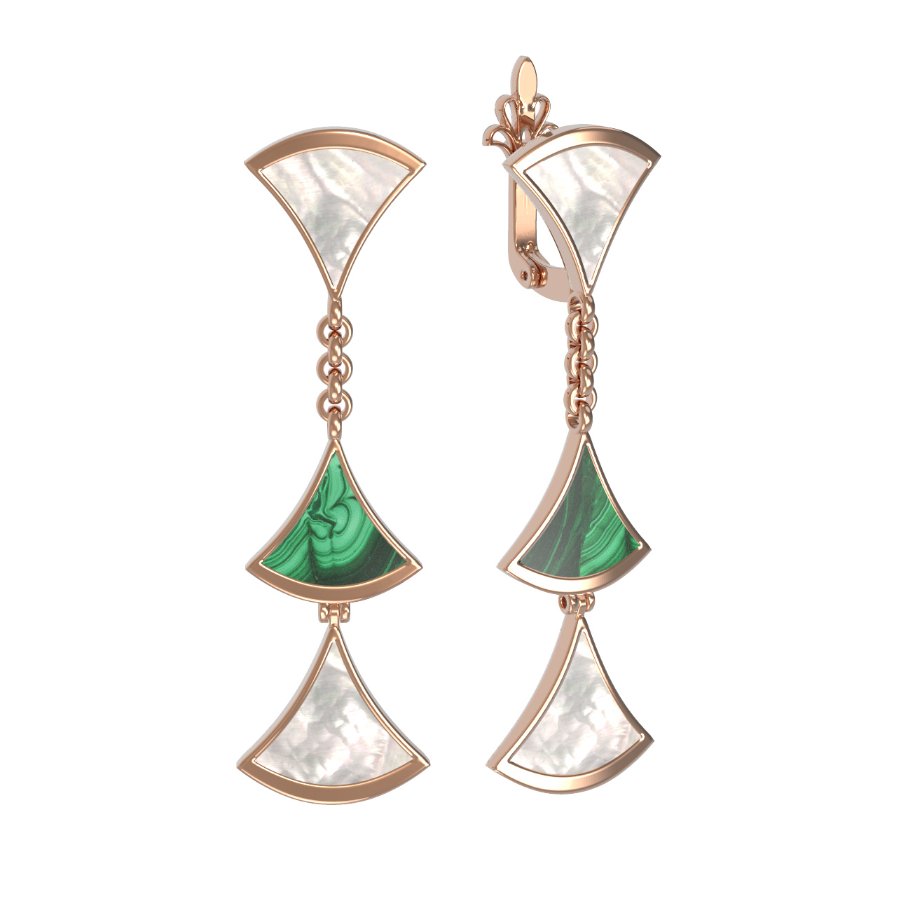 Серьги из золота c малахитом и перламутром