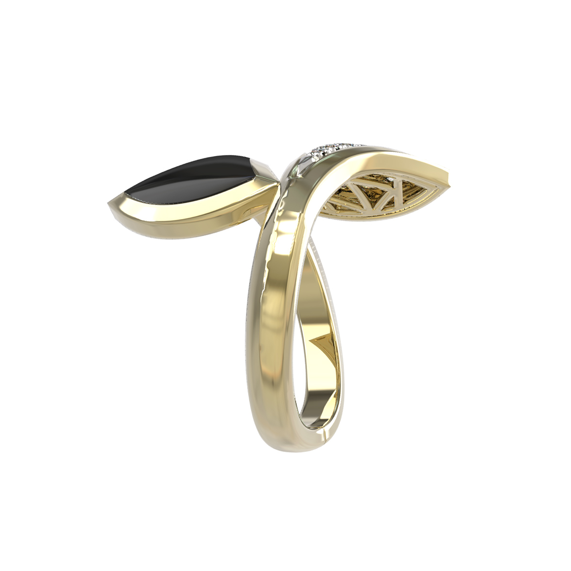Кольцо из лимонного золота c бриллиантами и ониксом