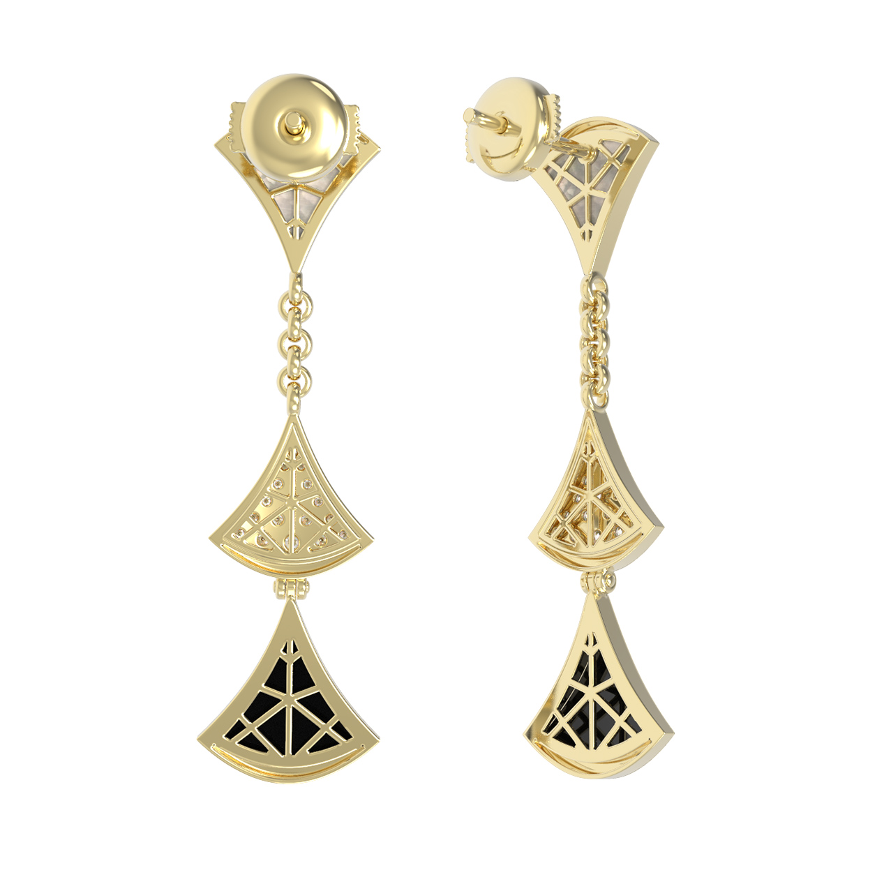 Серьги из лимонного золота c бриллиантами, ониксом и перламутром
