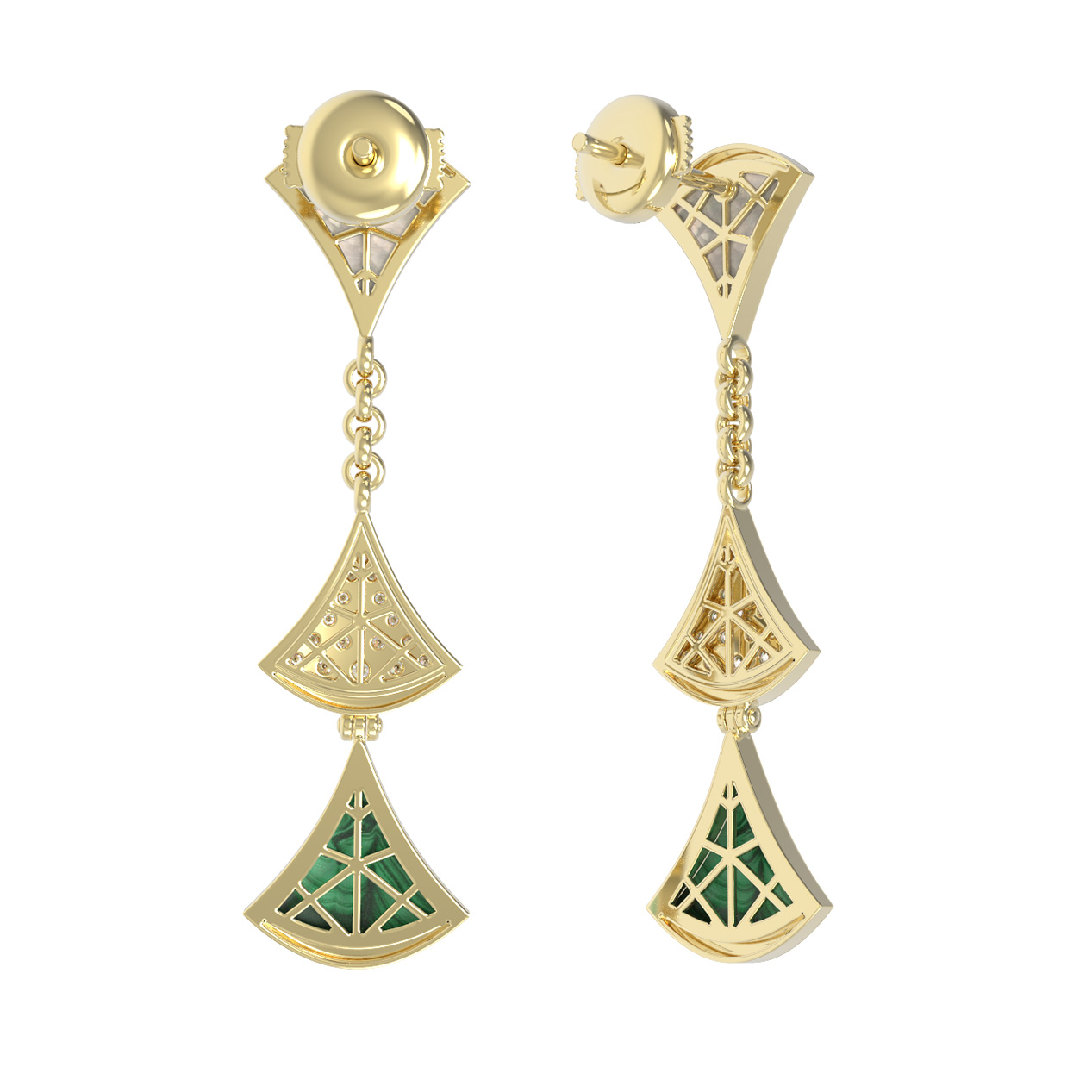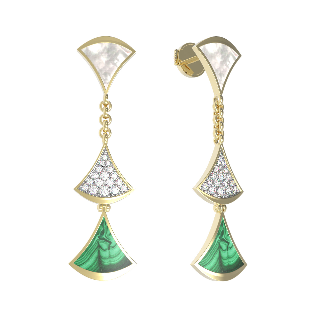 Серьги из лимонного золота c бриллиантами, малахитом и перламутром
