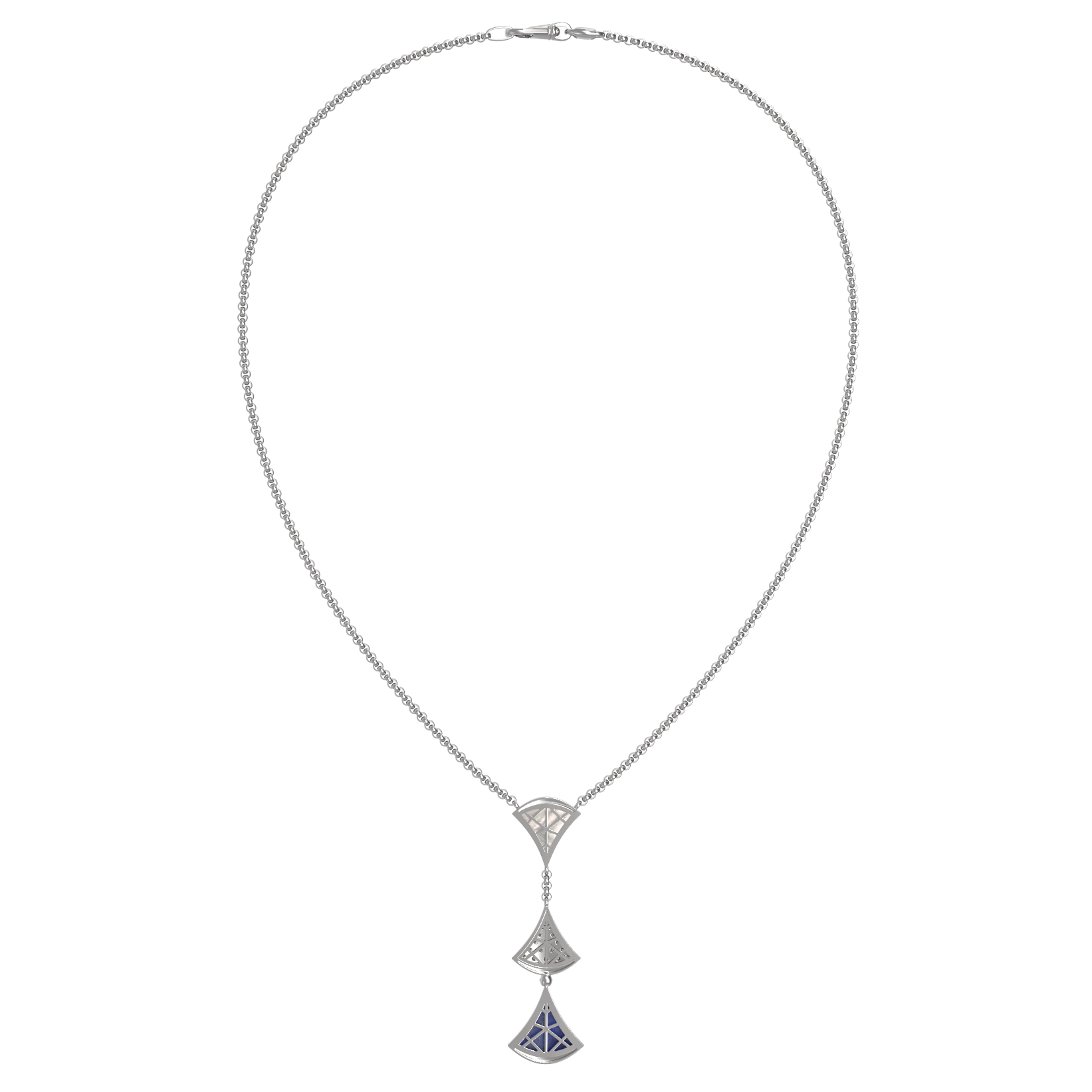 Колье из белого золота c бриллиантами, лазуритом и перламутром