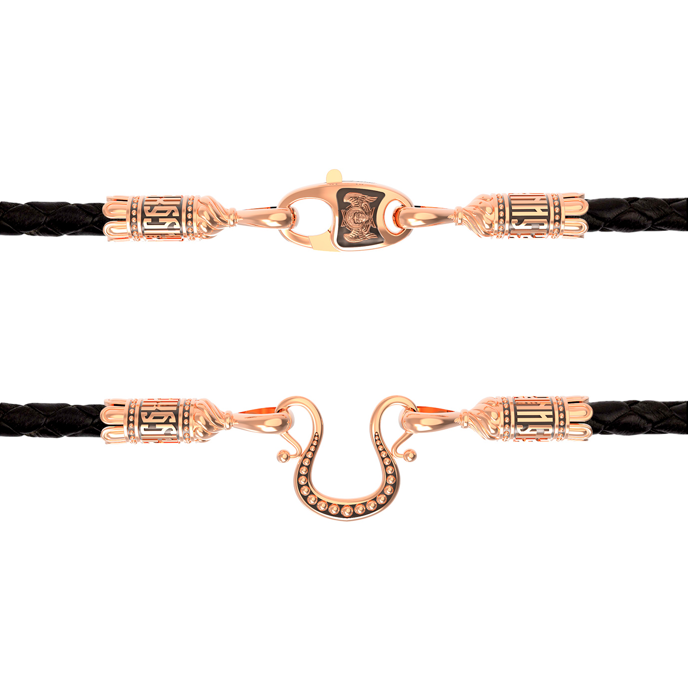 Гайтан из золота c кожаным шнурком