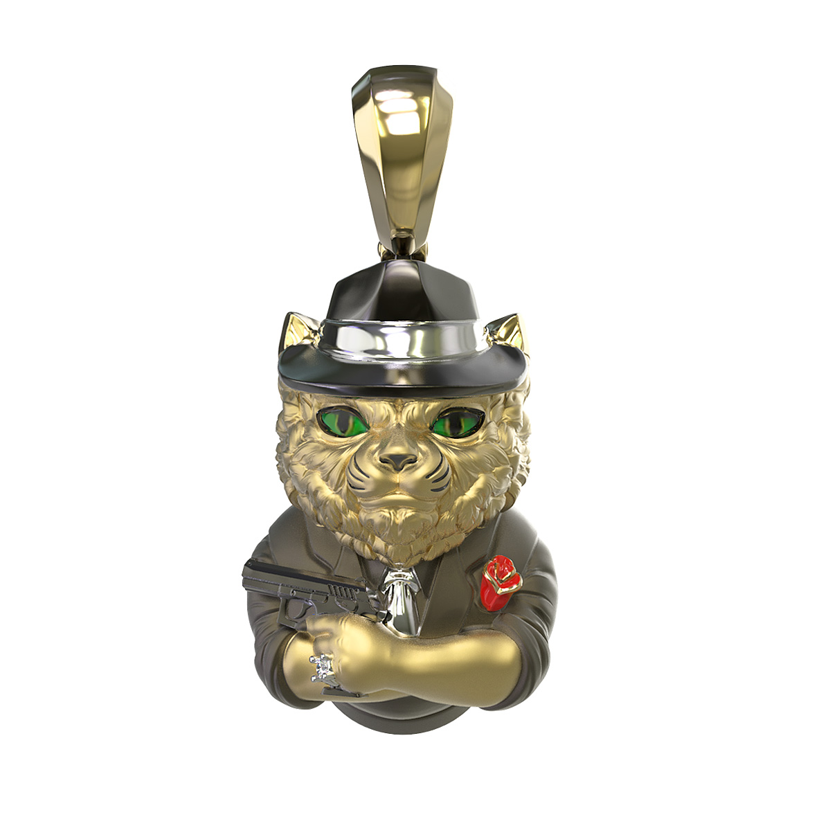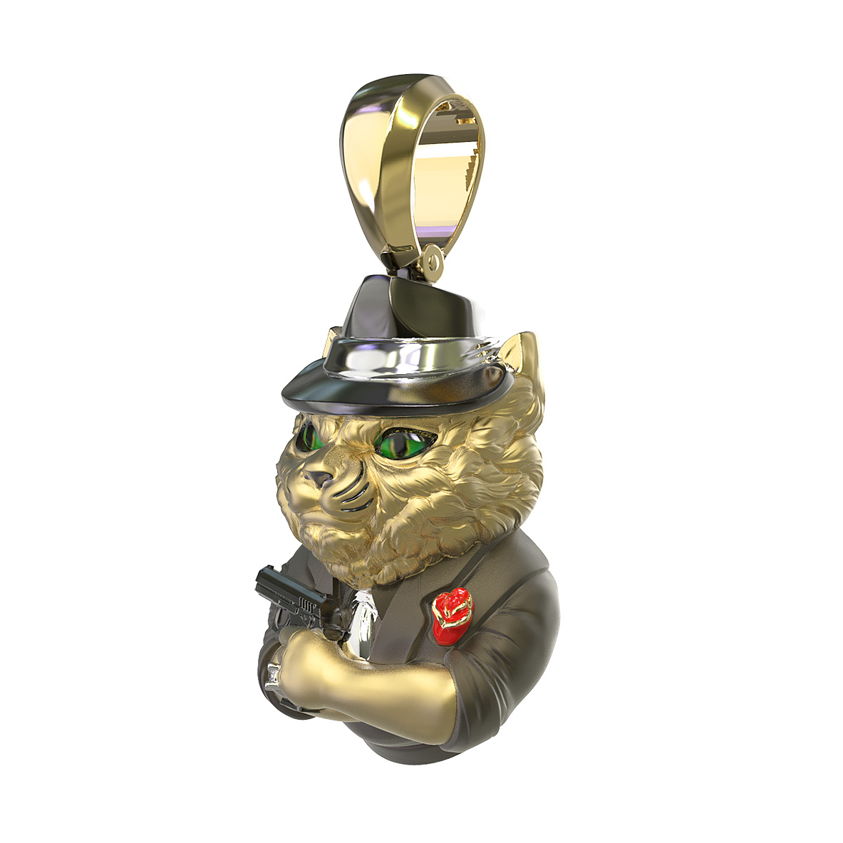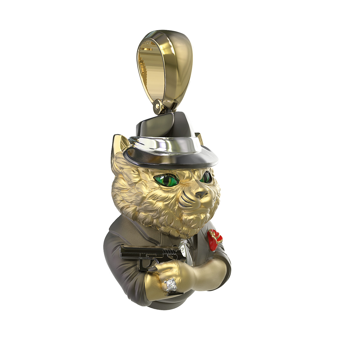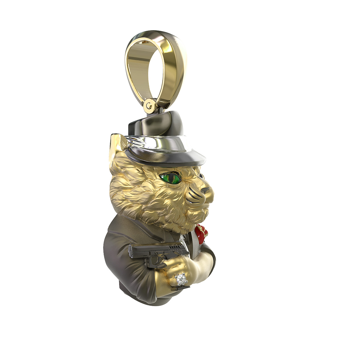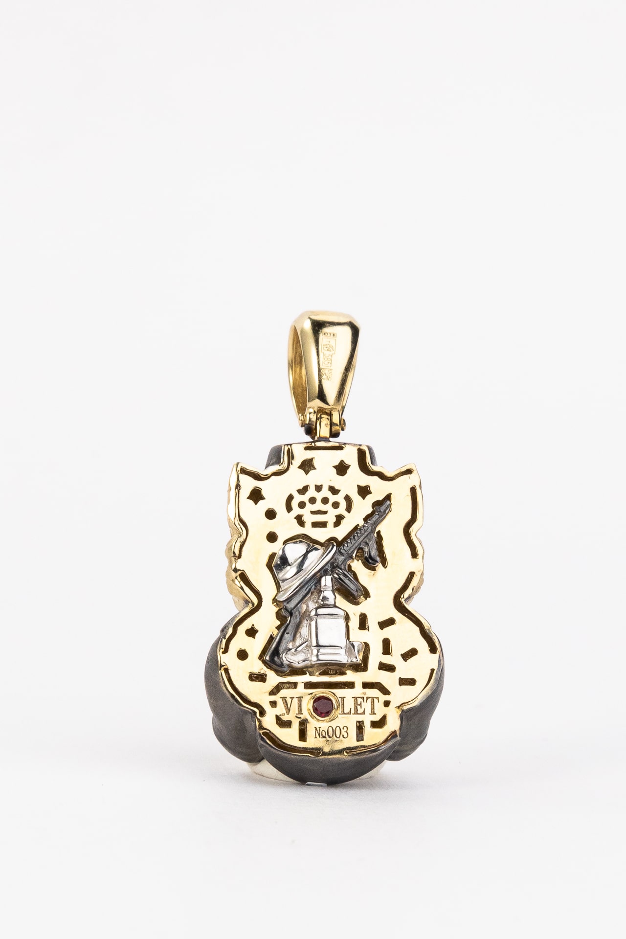 Подвеска из лимонного золота c эмалью, бриллиантами и рубином