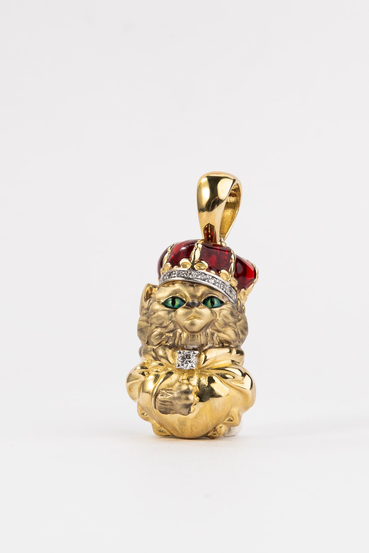 Подвеска из лимонного золота c эмалью, бриллиантами и рубином