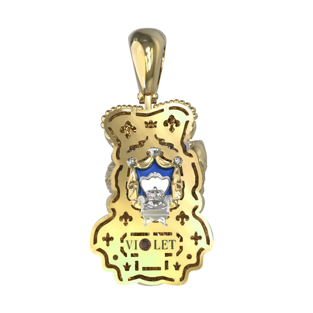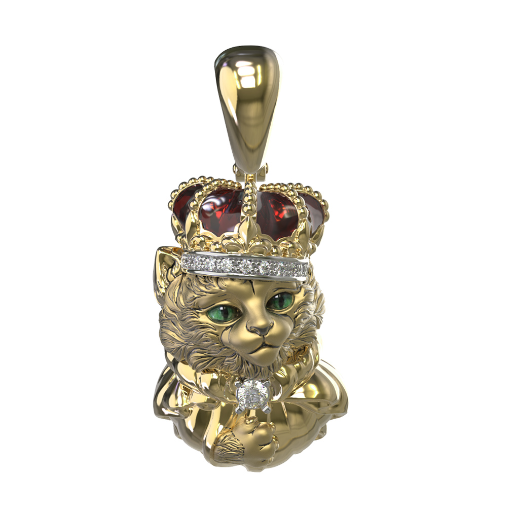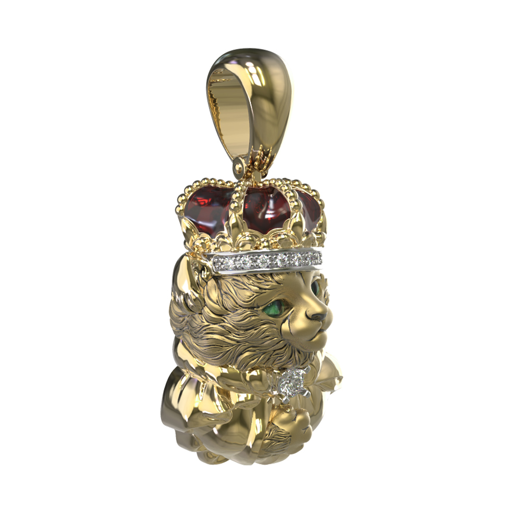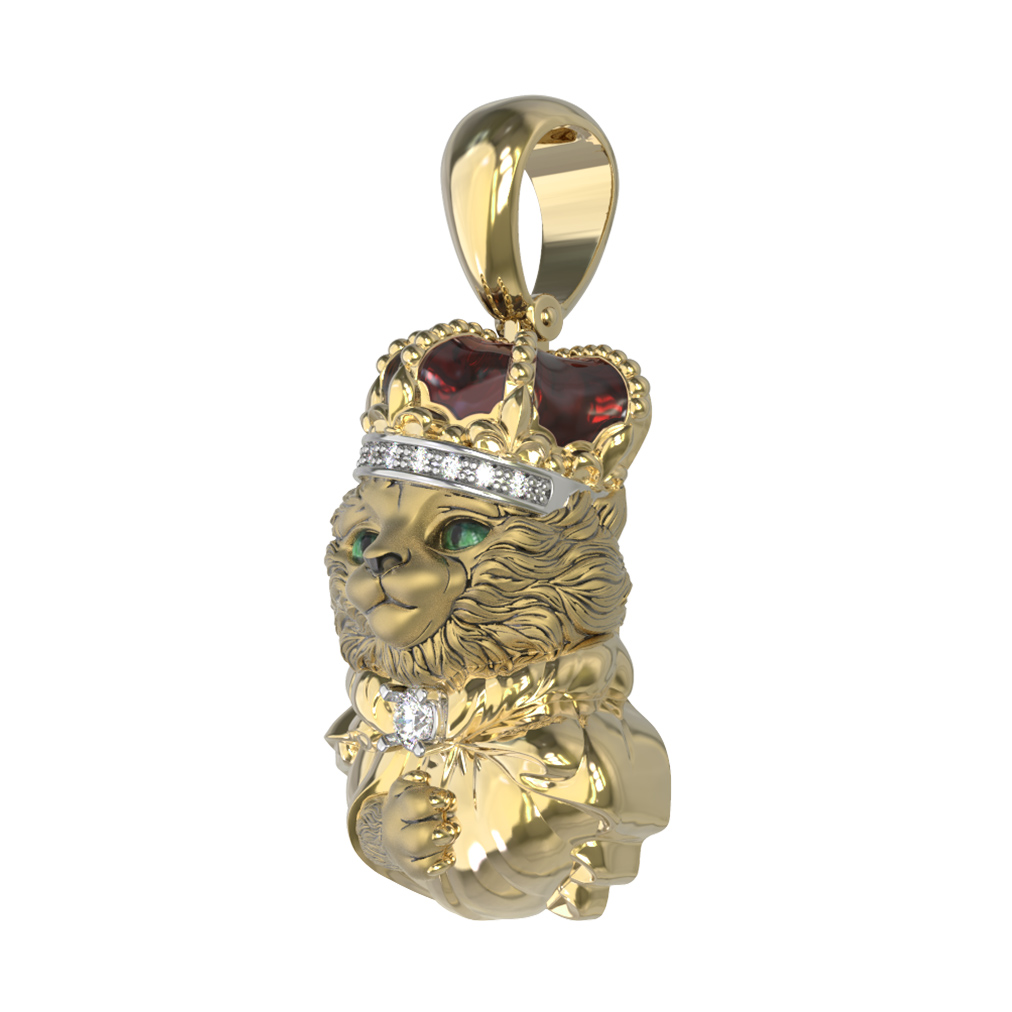 Подвеска из лимонного золота c эмалью, бриллиантами и рубином